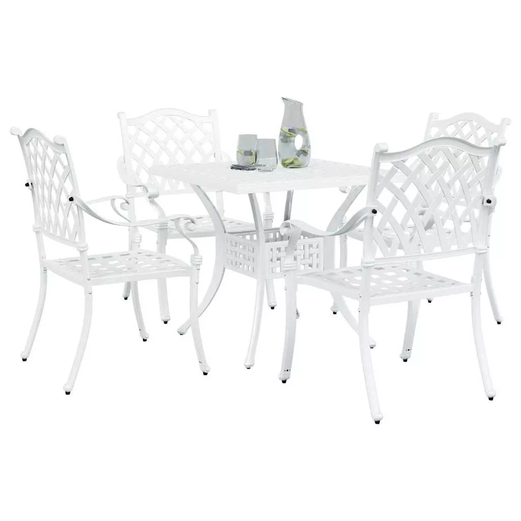 - Minőségi anyagok: Az öntött alumíniumnak köszönhetően a kertibútor szett masszív, texturált felülettel rendelkezik, amit öröm megérinteni. Az alumínium szerkezete elég erős ahhoz, hogy bírja a kültéri viszonyokat, így sokáig szép marad a kertedben.