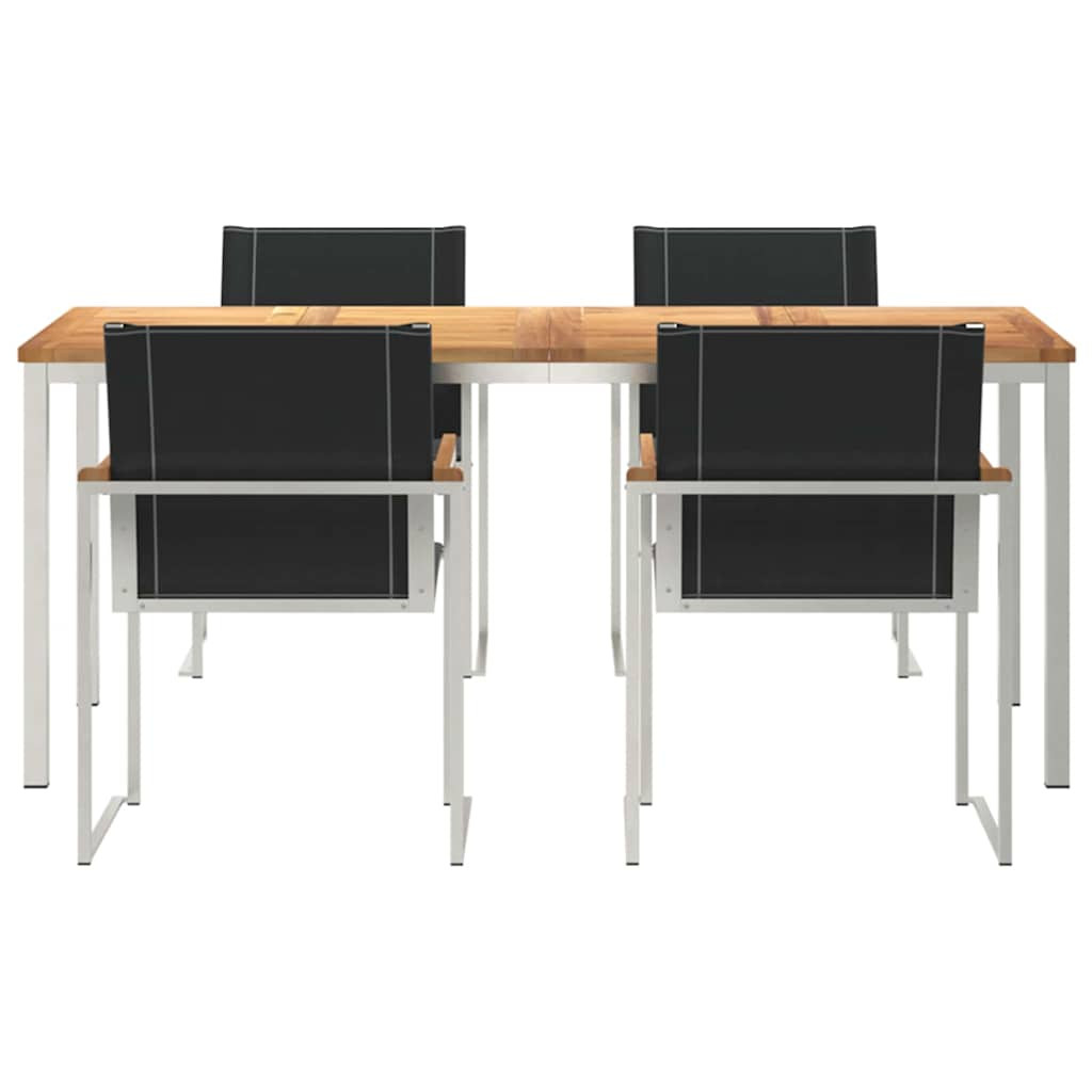 - Anyagok: Ez a rozsdamentes acél étkezõkészlet tökéletesen van tervezve a tartósságra. Az acél vázát tartós porbevonat védi, amely ellenáll az időjárás viszontagságainak, így hosszú távon is megőrzi a jól néző külsejét. A textilén ülések és háttámlák légáteresztők és nagyon kényelmesek, így ideálisak a kültéri lazításhoz.