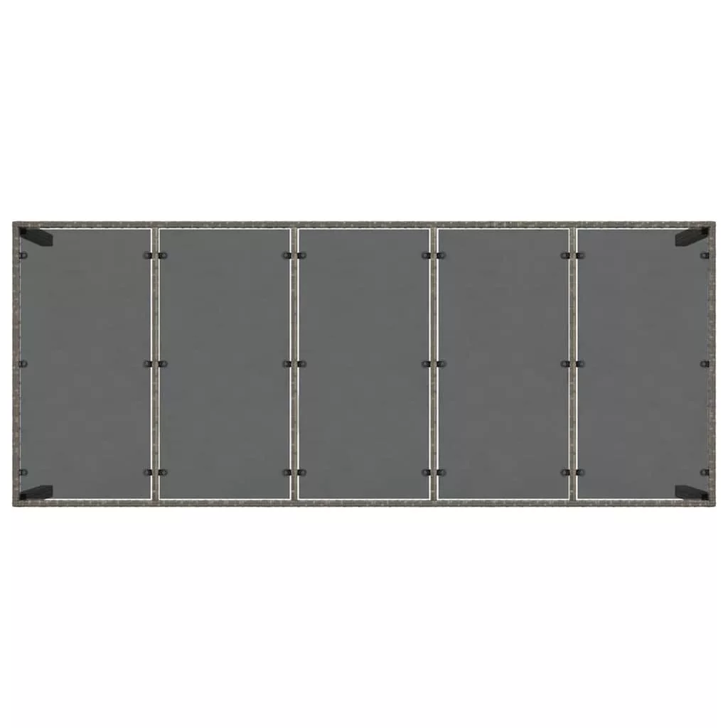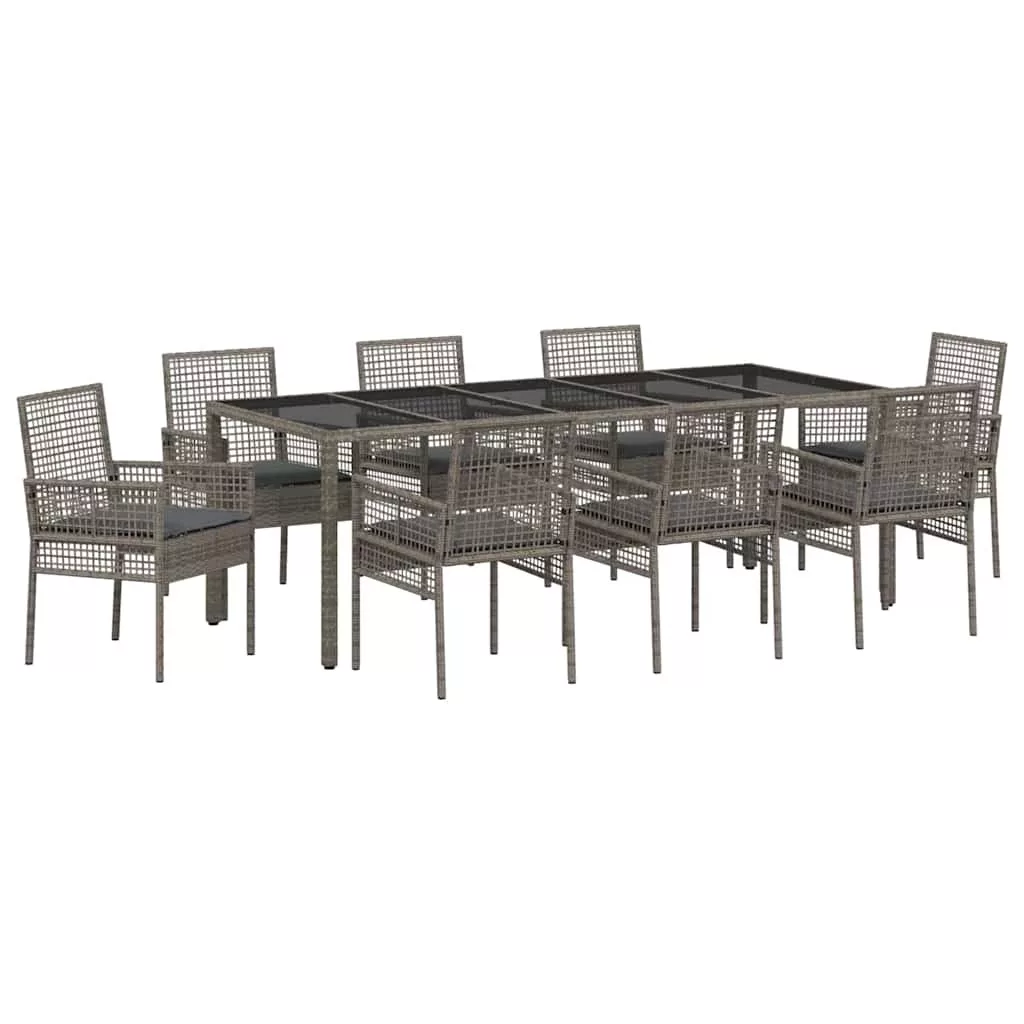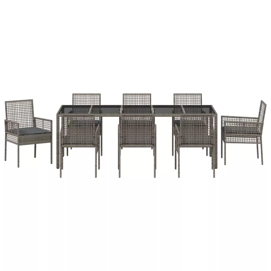 Ez a Modern Kerti Étkező Szett azonnali figyelemfelkeltő központi darab lehet bármilyen kültéri helyszínen, tökéletesen ötvözve a stílust és a funkcionalitást. A letisztult vonalak és minimalista dizájn eleganciát ad a könnyed, baráti összejövetelektől kezdve a formális szabadtéri étkezésekig. Kiválóan passzol modern kertekhez és teraszokhoz, bőséges helyet és kellemes hangulatot biztosítva a vendégeid számára. A poli rattan és a temperált üveg gondos kombinációja stílusos eleganciát sugall, míg a kényelmes párnák garantálják a szuper kellemes étkezési élményt.