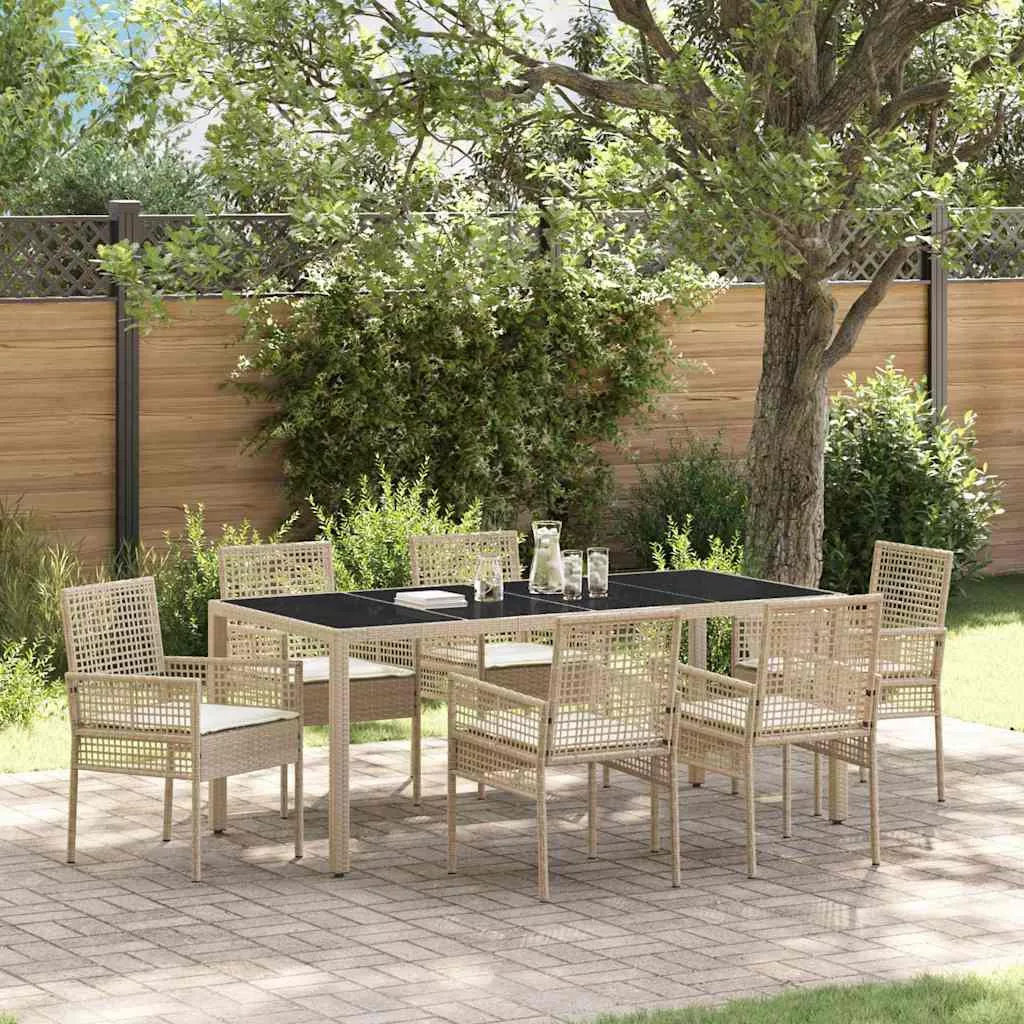 Ez a Modern Kerti Étkező Szett azonnali figyelemfelkeltő központi darab lehet bármilyen kültéri helyszínen, tökéletesen ötvözve a stílust és a funkcionalitást. A letisztult vonalak és minimalista dizájn eleganciát ad a könnyed, baráti összejövetelektől kezdve a formális szabadtéri étkezésekig. Kiválóan passzol modern kertekhez és teraszokhoz, bőséges helyet és kellemes hangulatot biztosítva a vendégeid számára. A poli rattan és a temperált üveg gondos kombinációja stílusos eleganciát sugall, míg a kényelmes párnák garantálják a szuper kellemes étkezési élményt.