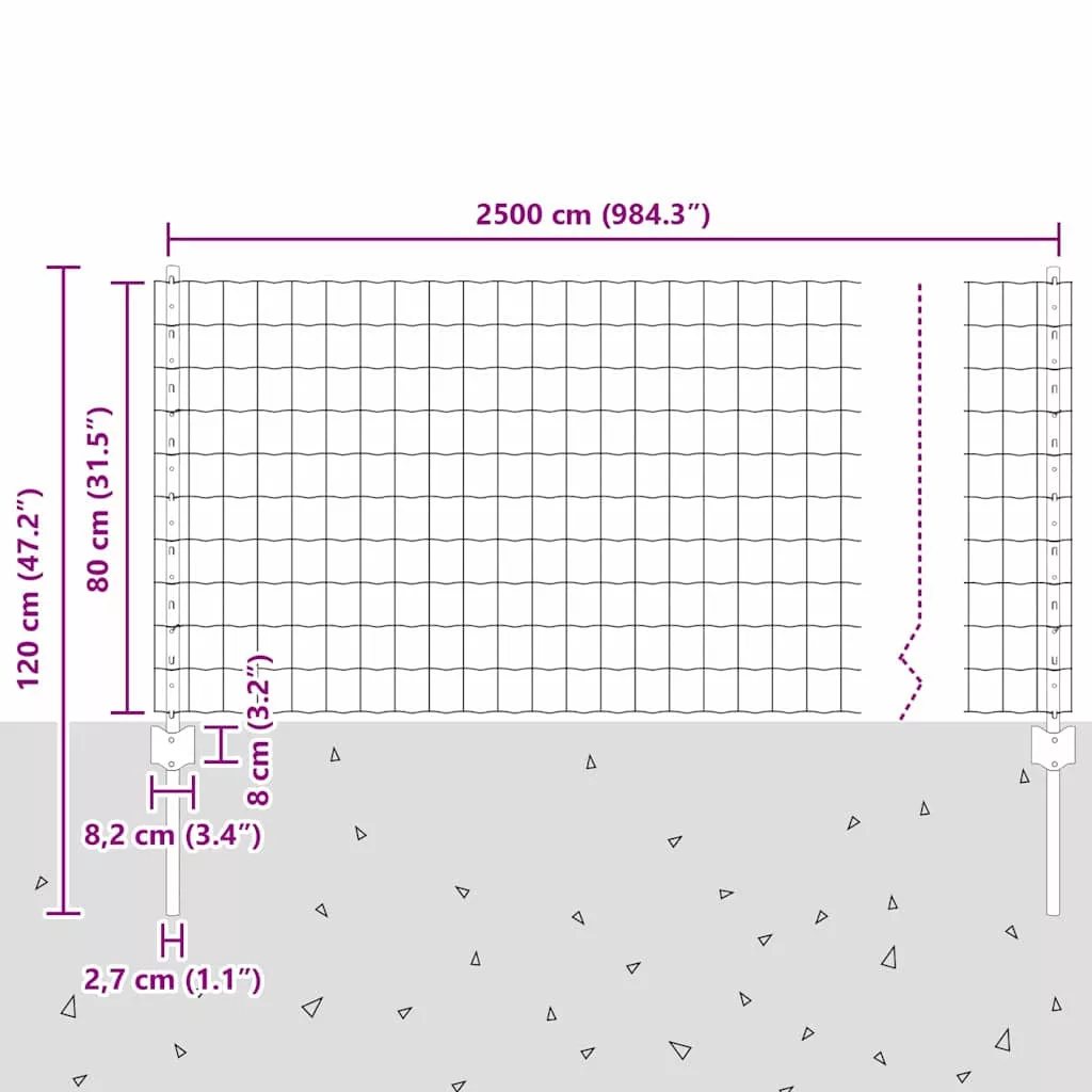 vidaXL Kerítés oszlopokkal Ezüst 0.8 x 25 m Acél