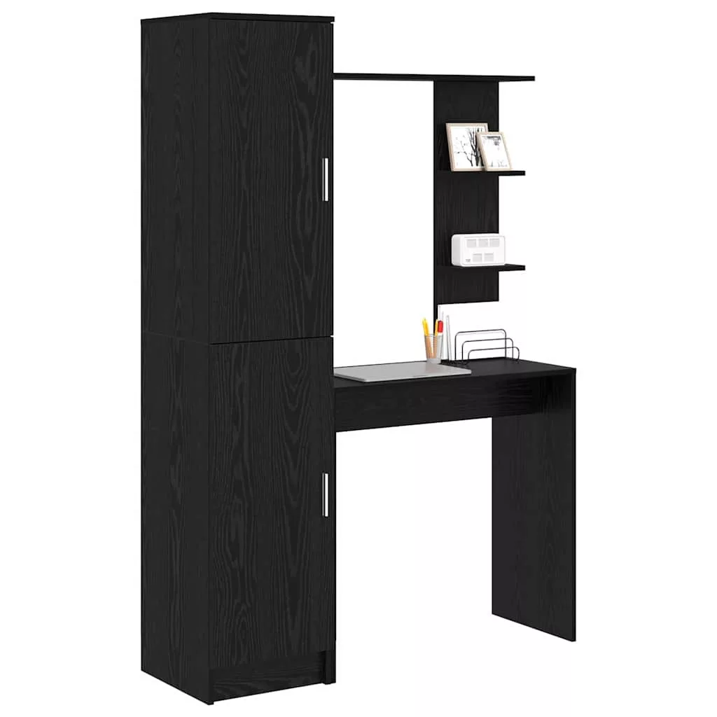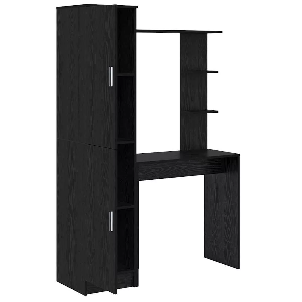 - Praktikus Tárolás: Deszkás polcokkal van felszerelve, az íróasztal bőséges helyet ad könyveknek és egyéb tárgyaknak, kényelmes használatot biztosítva. A zsanéros ajtók védik a dolgaidat, és ha zárva vannak, rendezett megjelenést adnak.