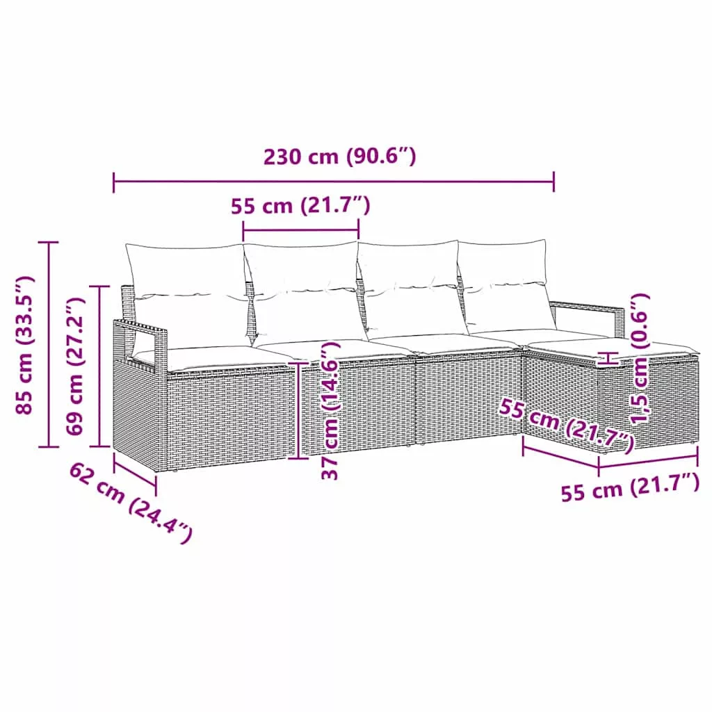 Ez a kültéri kanapé szett a modern eleganciát képviseli, letisztult vonalaival és praktikus funkcióival. Kifejezetten kertekbe és teraszokra készült, ötvözi a stílust a poli rattan párnázat kínálta kényelemmel, meghívva a használókat, hogy pihenjenek és élvezzék a kültéri életet.