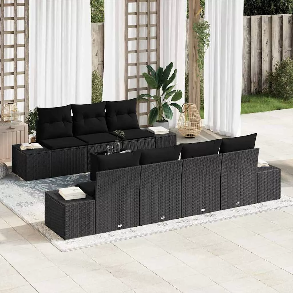 vidaXL Kerti Kanapé Szett párnával 8 pcs Fekete polirattan