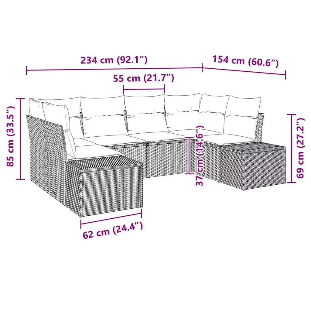• Anyagok: prémium poly rattanból készült, ez a kanapé szett időjárás- és UV-álló, ami garantálja a hosszú távú tartósságot kültéren. A porszórt acélkeret erős támasztékot nyújt, így a kanapé minden évszakban megőrzi az állagát.