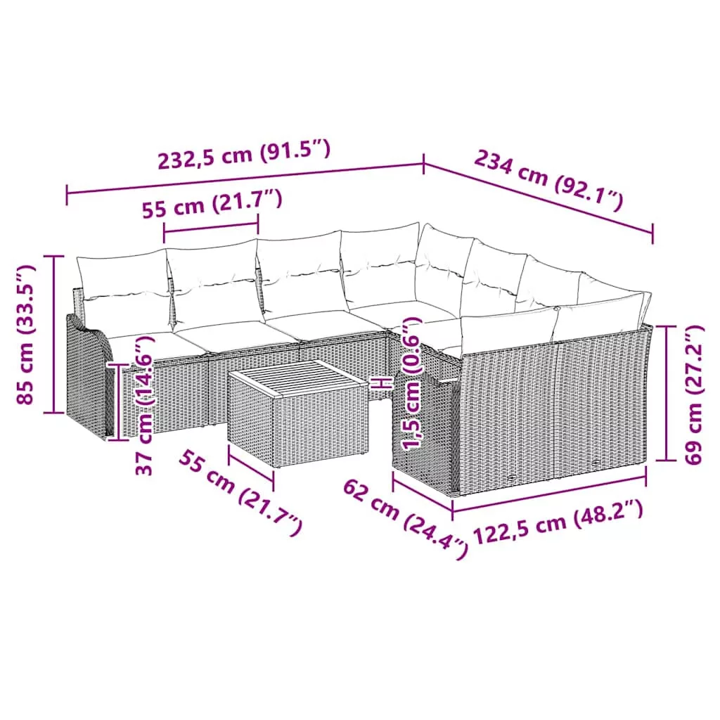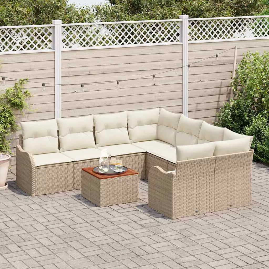 vidaXL Kerti Kanapé Szett 9 pcs Bézs Poli rattan