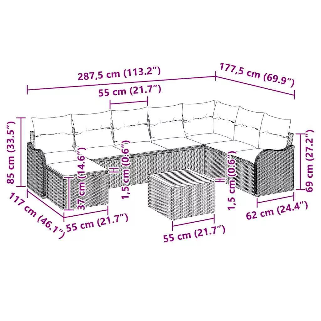- Komponensek A szett sarok ülést, középső üléseket, karosszéket, lábtartót és kertasztalt tartalmaz. Minden darab polirattan háttal és könnyen tisztítható párnákkal készül.