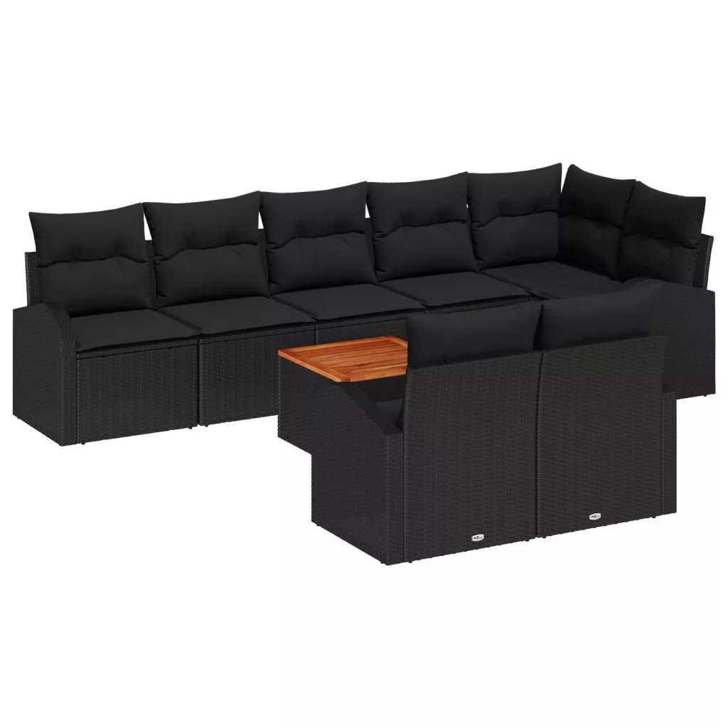 vidaXL 9 Darabos Kerti Kanapészett Párnákkal Fekete Poli Rattan Akácia