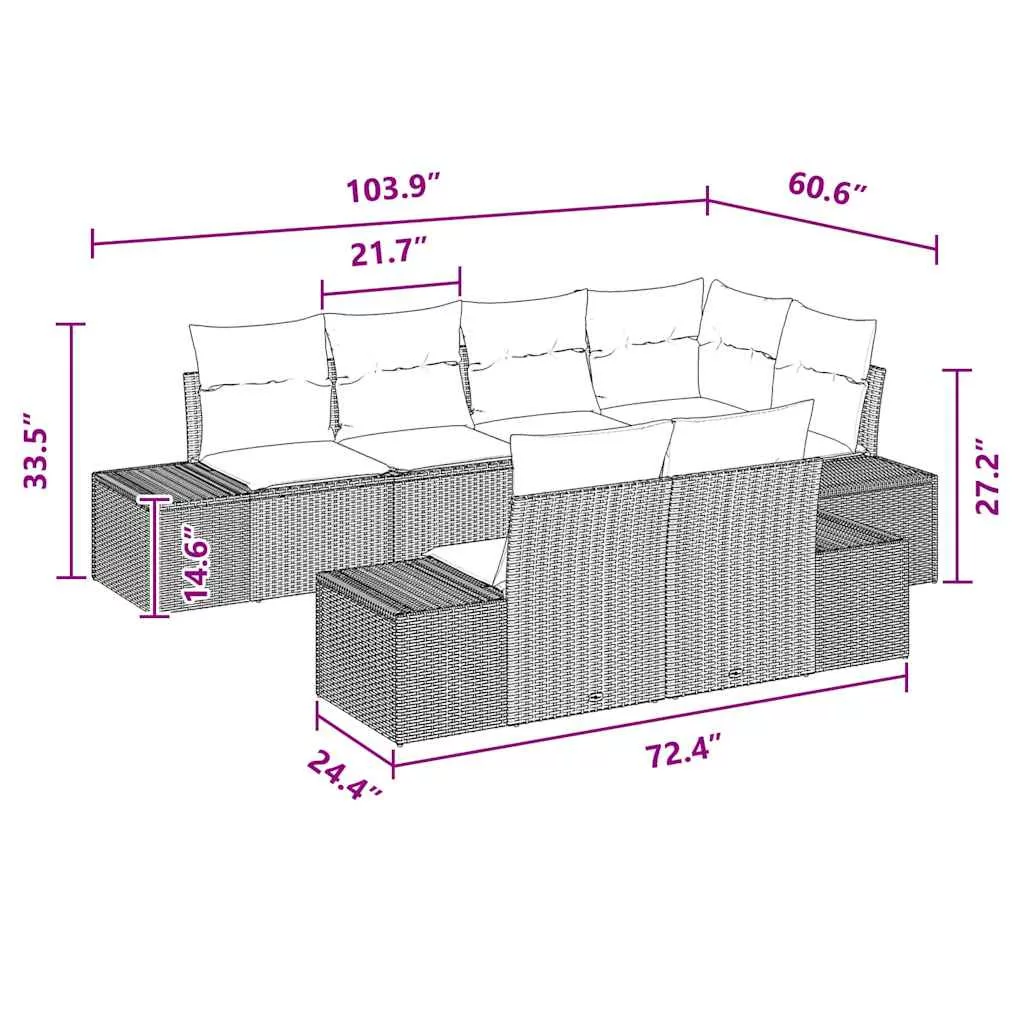 - Beépített alkatrészek A szett tartalmaz néhány kényelmes ülőalkatrészt: egy középső, sarok és oldalsó kanapét, mind puha poliészter kültéri párnákkal. A párnák időjárásálló anyagból készültek, így hosszan élvezhetők kültéren. A dizájn elősegíti a pihenést és a társasági életet a polirattan karfákkal, amik extra kényelmet adnak a leülőknek.