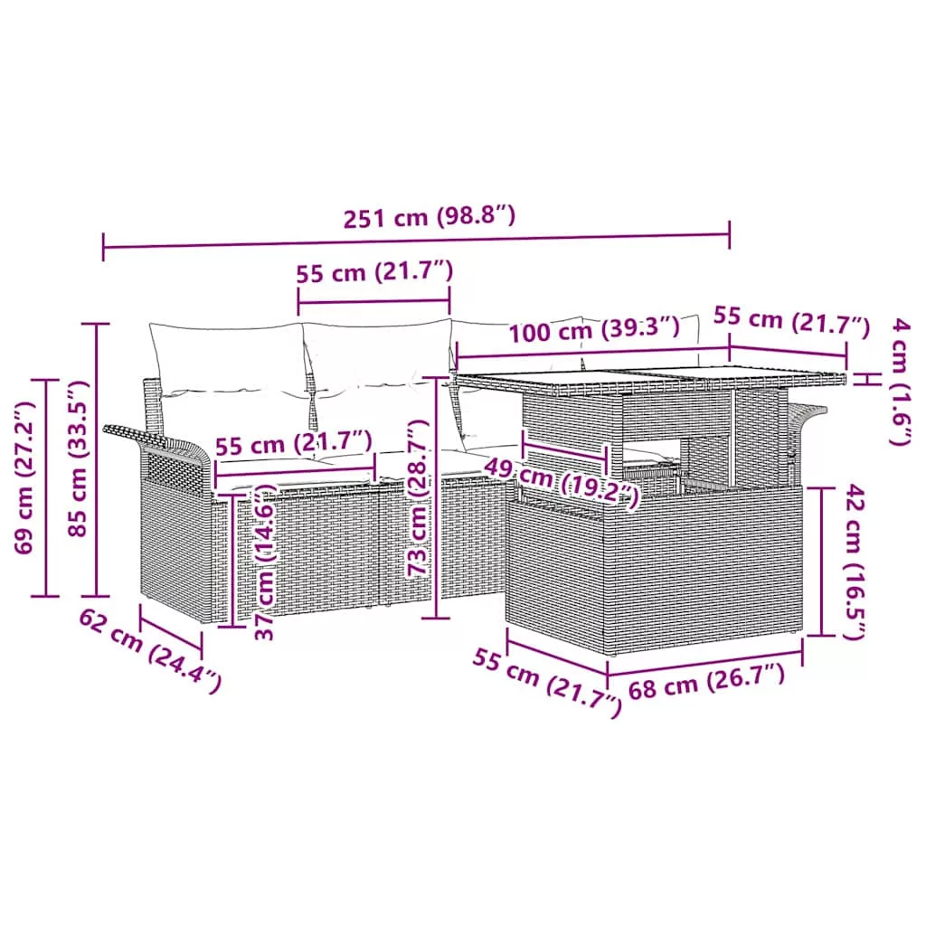 - Elegans poli rattamból: A szett prémium poli rattamból készült, ami stílusos megjelenést és szilárd felépítést biztosít. A poli rattan tartósságáról és az időjárás ellenállásáról ismert, így mindig szép marad.