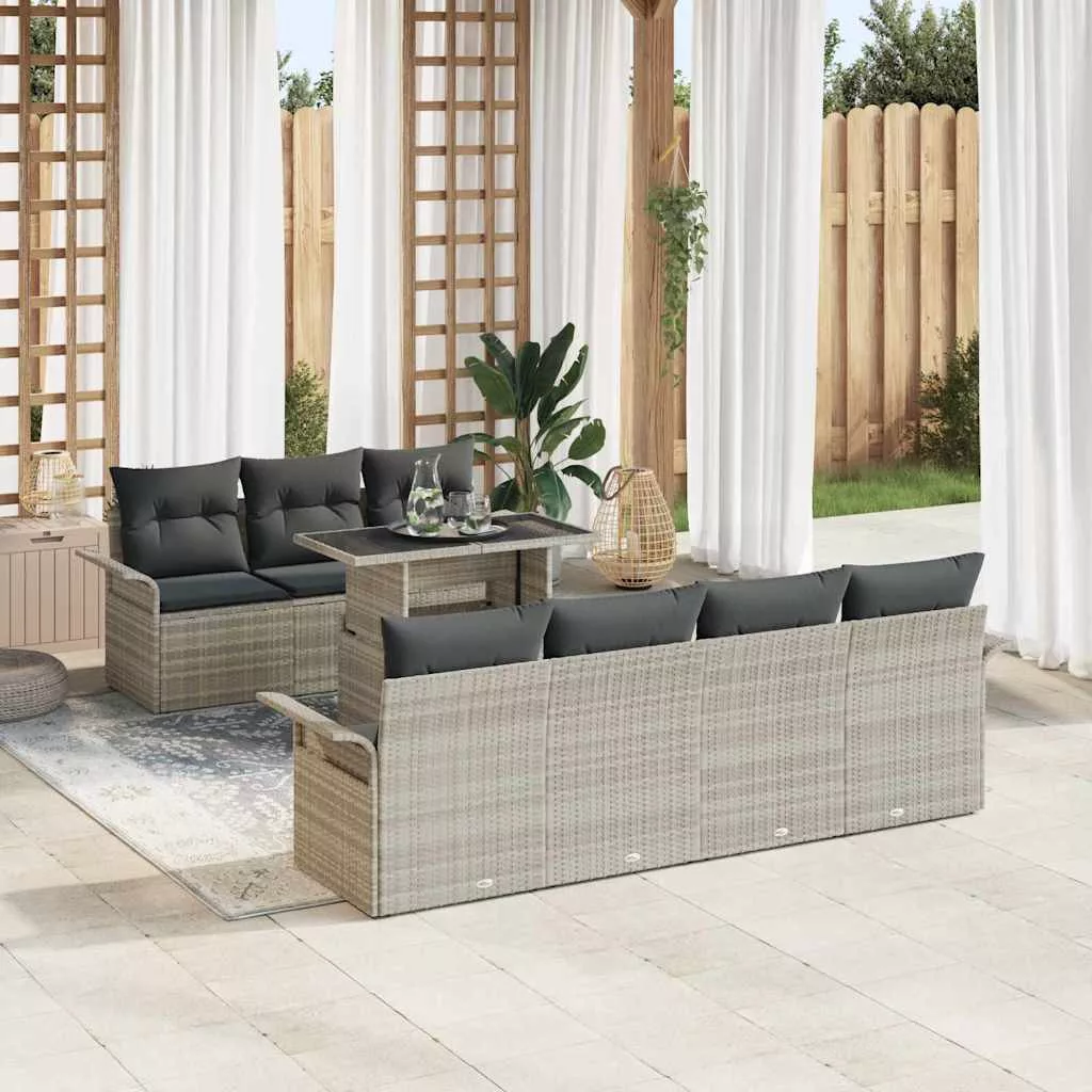- Anyagok: Magas minőségű Polirattanból és Tömör Akácfából készült, ez a szett vonzó, de tartós dizájnnal bír, hosszú élettartamot és eleganciát elérve a kültéri terekben. Az anyagokat az időjárásállóságuk és szép megjelenésük miatt választották.
