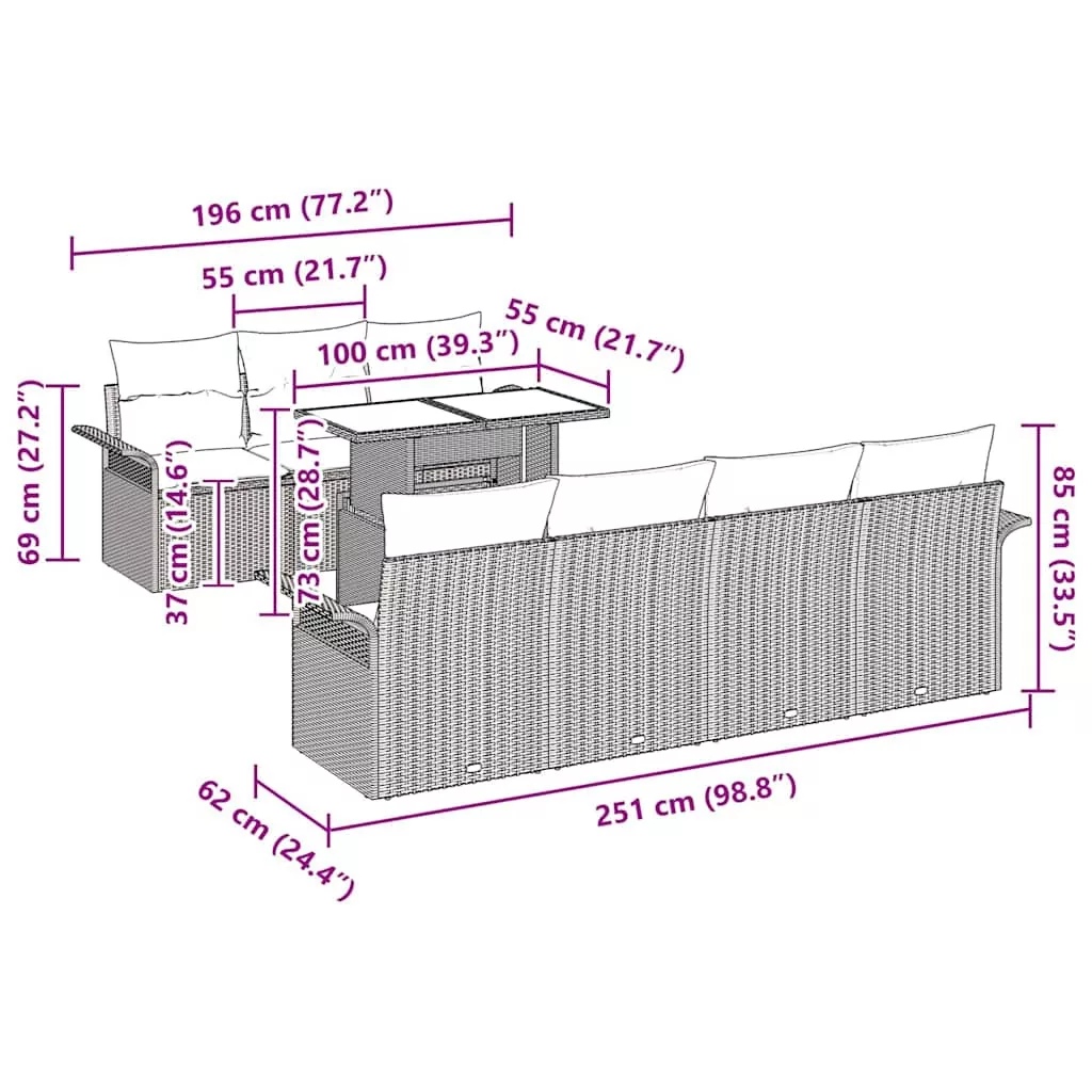 Ez a Moduláris Kerti Kanapészett stílusos és praktikus ülőhelyet kínál kültéri helyiségekhez, tökéletes teraszokhoz, kertekhez és erkélyekhez. Modern, letisztult esztétikával készült, a felesleges díszítések minimalizálásával teremt megnyugtató légkört. A Polirattan és a Tömör Akácfa kombinációja eleganciát ad, így figyelemfelkeltő dísze lehet bármely kültéri helyszínnek, legyen szó barátokról vagy magányos pihenésről.