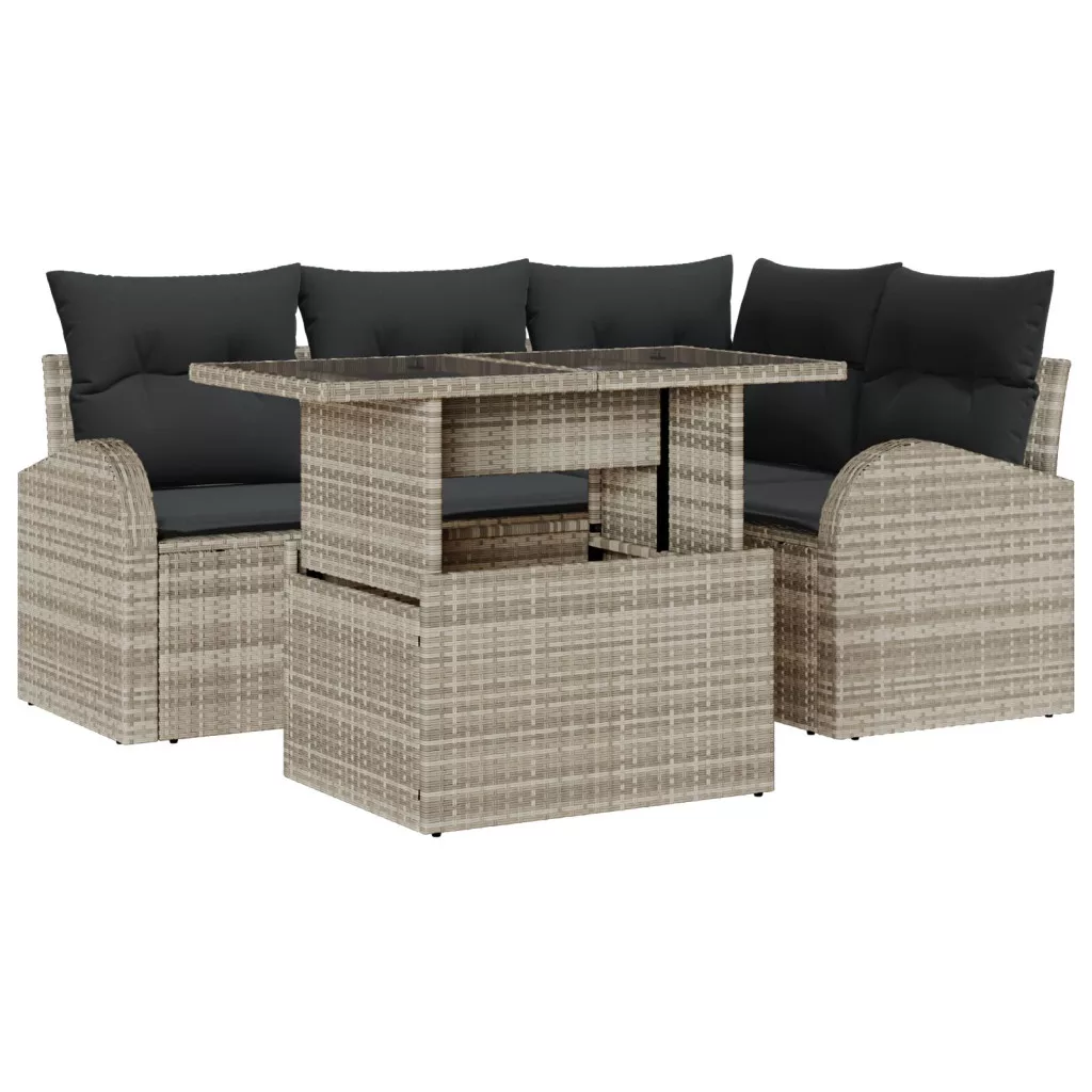 - Dinamikus jellemzők: A moduláris dizájn lehetővé teszi, hogy könnyedén átalakítsd a kültéri teredet. A kanapészekciók átrendezhetők, így gyorsan igazodnak a szükséges ülőhelyekhez. Mivel belső tárolóhelyet is kínál, a fontos dolgok rendezettek maradnak, így még praktikusabbá válik a szett. Élvezd a stílusos kültéri életet funkcionális elemekkel.