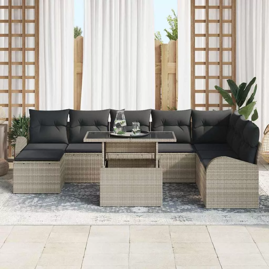 - Tartós polirattan anyag A kanapé szett minőségi polirattanból készült, ami stílusos és tartós opció a kültéri bútorok számára. Ellenáll az UV-sugárzásnak, így tartja a színeket erős napfény mellett is. Minimális karbantartás szükséges, így tökéletes választás a kertbe.
