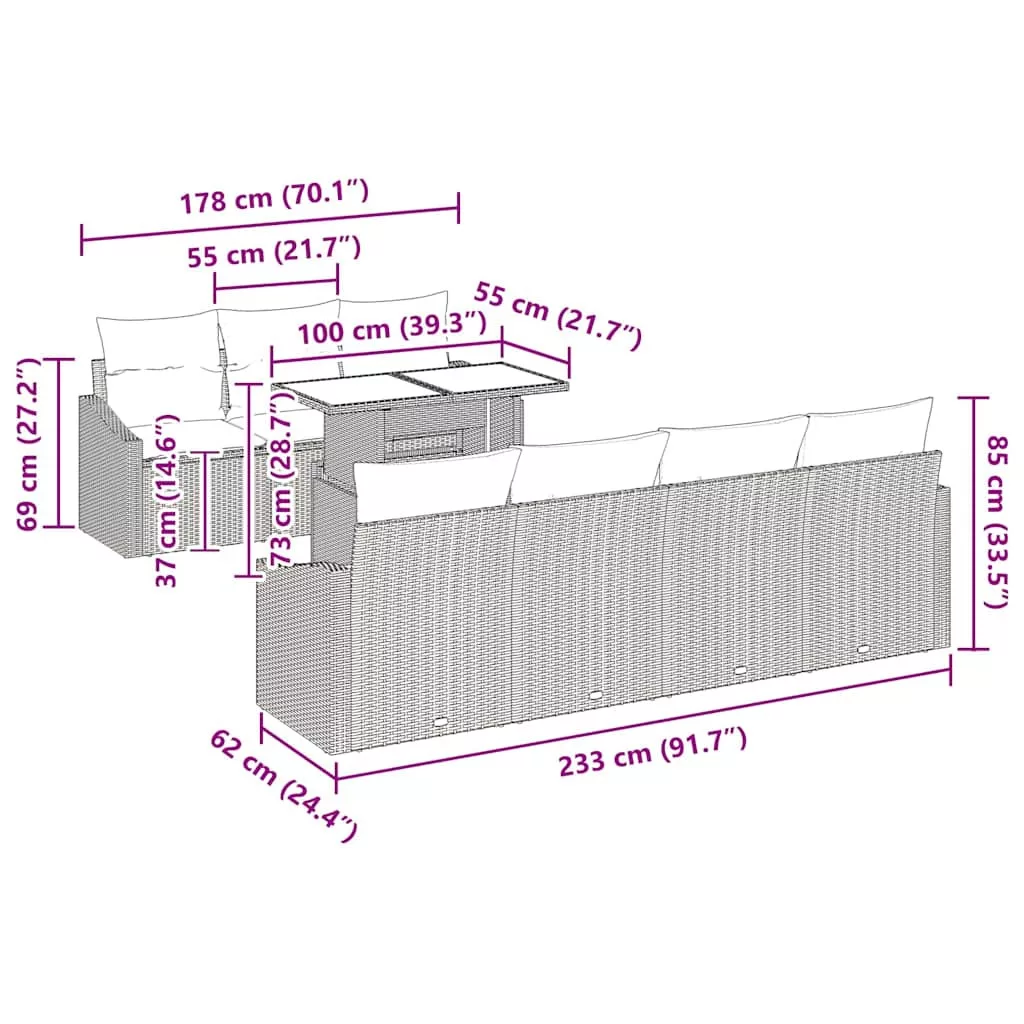 - Komponens jellemzők: Stabil porbevonatú acélkeret biztosítja az egész kanapé szett megbízhatóságát. Az ülőpárnák cipzáras záródásúak, így könnyen levehetők és tisztíthatók, biztosítva a higiéniát és a kényelmet.