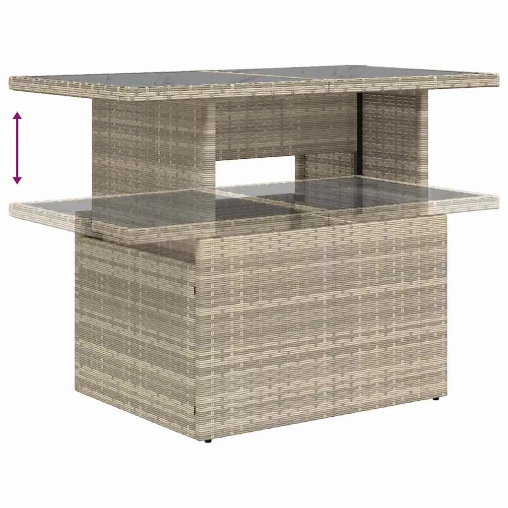 - Tartós polirattan konstrukció Ez a szett robusztus polirattanból készült, így ellenáll a kopásnak, miközben a napon pihen. A textúrája izgalmasan néz ki, és megbízhatóan támogatja a vendégeidet.
