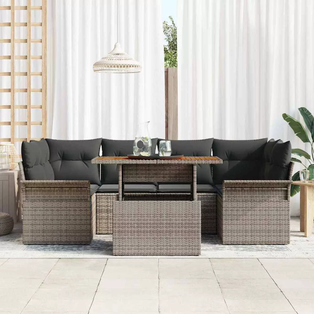 - Beépített Komponensek: A szett két karfás kanapét tartalmaz, mindegyik saját tároló megoldással, két sarokülőt és egy középső ülést, amely további tárolóval rendelkezik, esztétikai vonzerőt és praktikusságot biztosítva. Egy központi kerti asztal egészíti ki az elrendezést, szolgáltatási, bemutatási vagy dekorációs platformként.