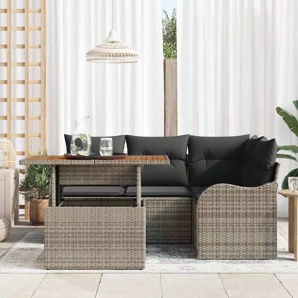 - Anyagok: Polirattanból és tömör akácfából készült, ez a szófa garnitúra az elegancia és a tartósság tökéletes kombinációja. A polirattan remek időjárás-állóságot ad, így ideális kültéri használatra, míg a tömör akácfa természetes szép és erős, biztosítva ezzel a hosszú élettartamot és az időtálló megjelenést.