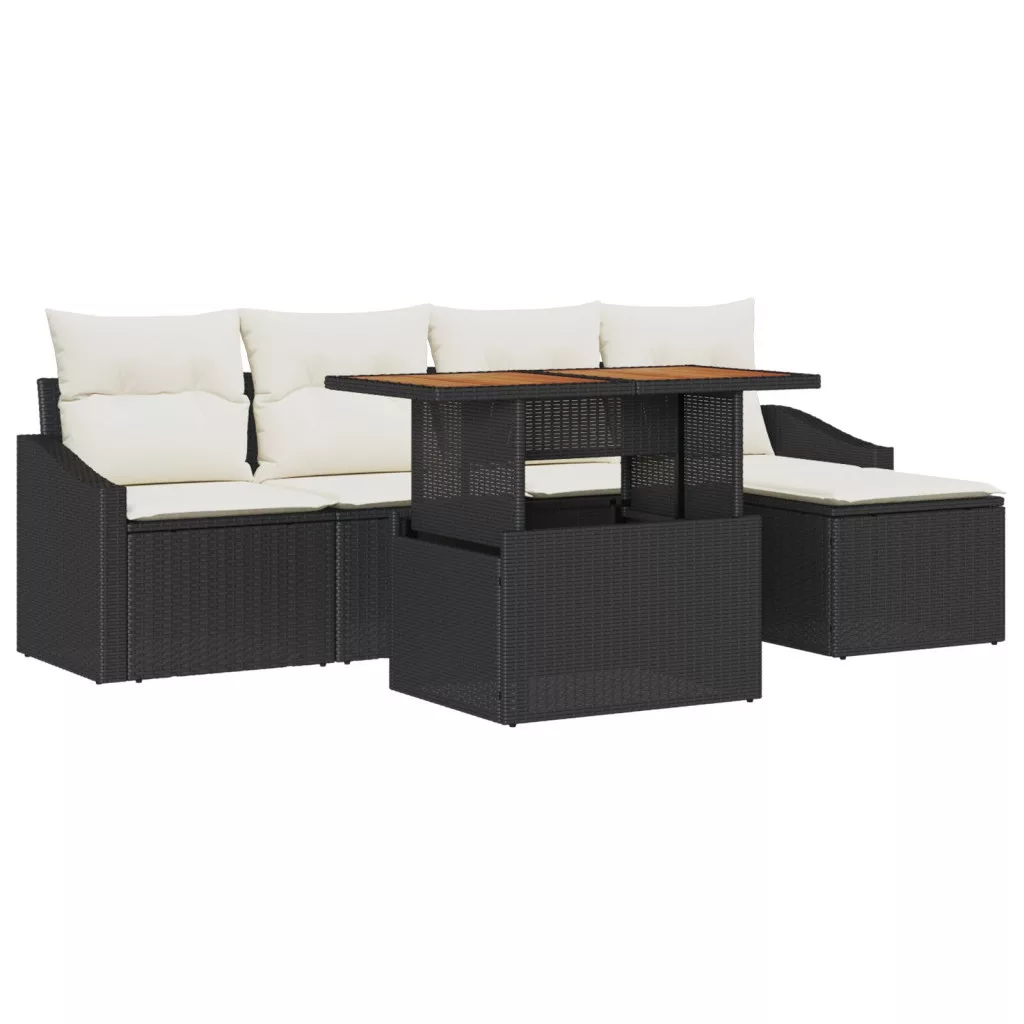 - Benne Foglalt Elemet: A szett két karosszéket, két középső ülést, egy tárolós lábtartót és egy hozzá illő kerti asztalt tartalmaz. Minden egyes darab polirattannal van bevonva és akácfa felületekkel van kiegészítve.