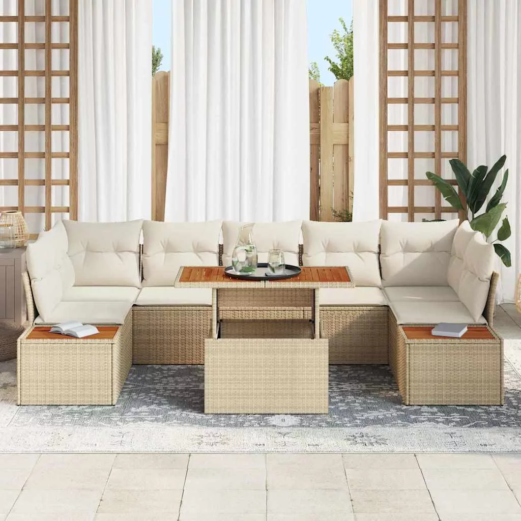 - Minőségi Anyagok: Polirattanból és porfestett acélból készült, a szett UV-álló és robusztus. A keretek erős támasztékot nyújtanak a kültéri viszonyokkal szemben, miközben modern, letisztult megjelenést biztosítanak az együttesnek. A tömör akácfa felületek természetes eleganciát adnak, ötvözve a szépséget és a funkcionalitást.