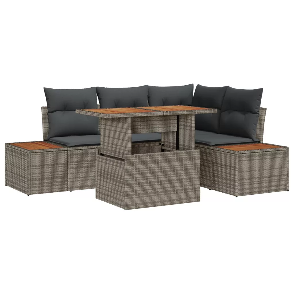 - Tartós Poli Rattan: A fő anyag, a poli rattan, biztosítja, hogy a szett ellenáll a napsugárzásnak, megőrizve esztétikai vonzerejét az évszakok során. Az olyan kiegészítő anyagok, mint a tömör akácfa, melegséget és szilárdságot adnak a dizájnnak. Ezen anyagok integrációja tartós minőséget és általános ellenálló képességet biztosít, így a szett éveken át makulátlan marad.