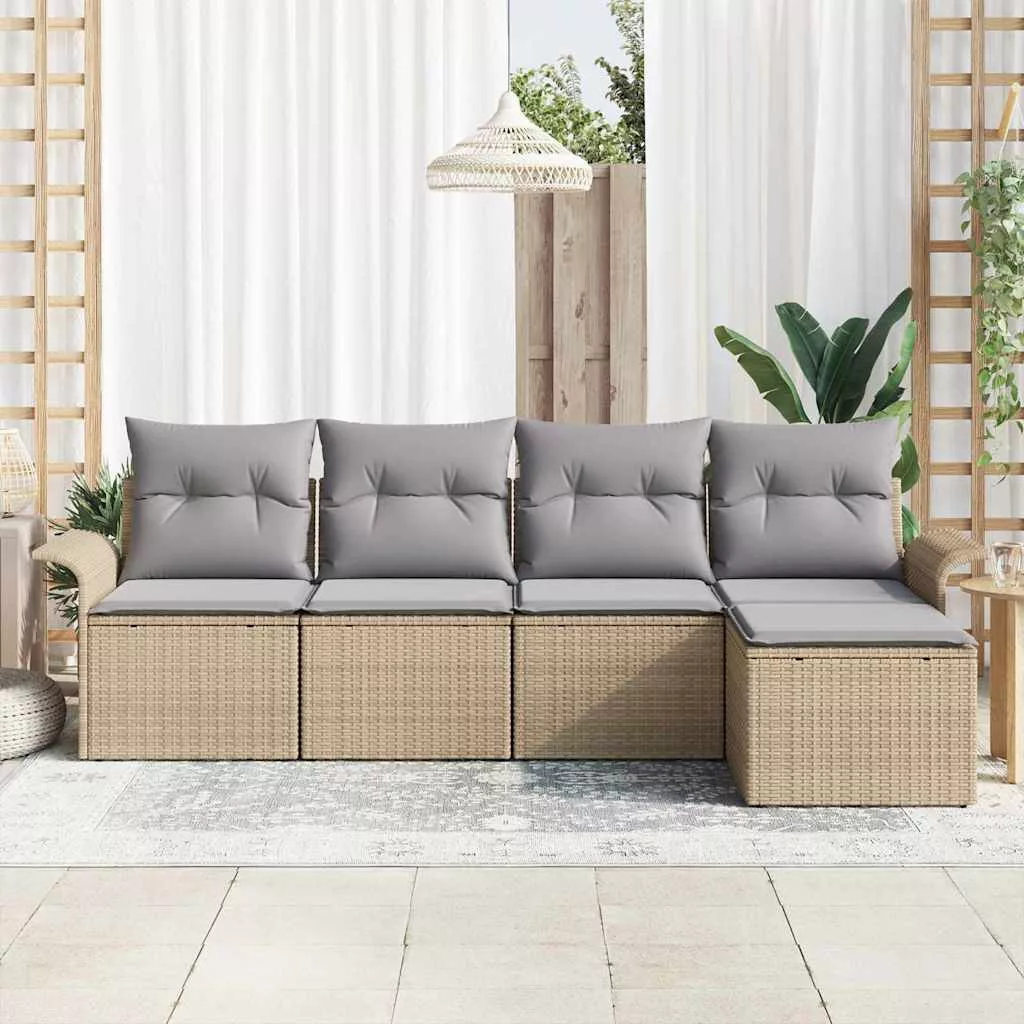 vidaXL Kerti Kanapé Szett párnával tárolóval 5 pcs Bézs Poli rattan