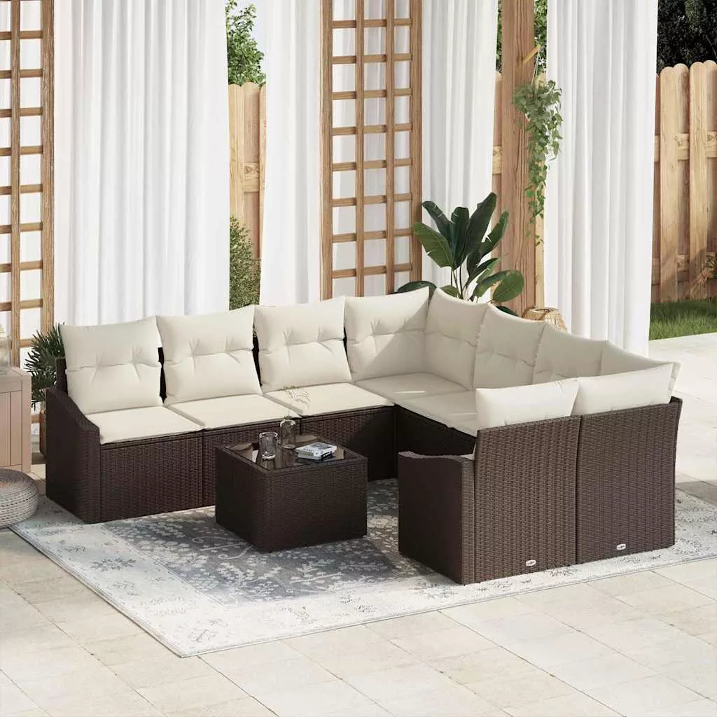 - Anyagok: A kerti kanapé szett szuper minőségű polirattanból készült, ami modern, szőtt textúrájú. Ez az anyag híres a tartósságáról és arról, hogy bírja a rossz időt, biztosítva a hosszú élettartamot. A szett porbevonatos acélvázzal van párosítva, ami stabilitást ad, míg a stílusos üvegfelület elegánssá teszi az asztalt, növelve modern vonzerejét.