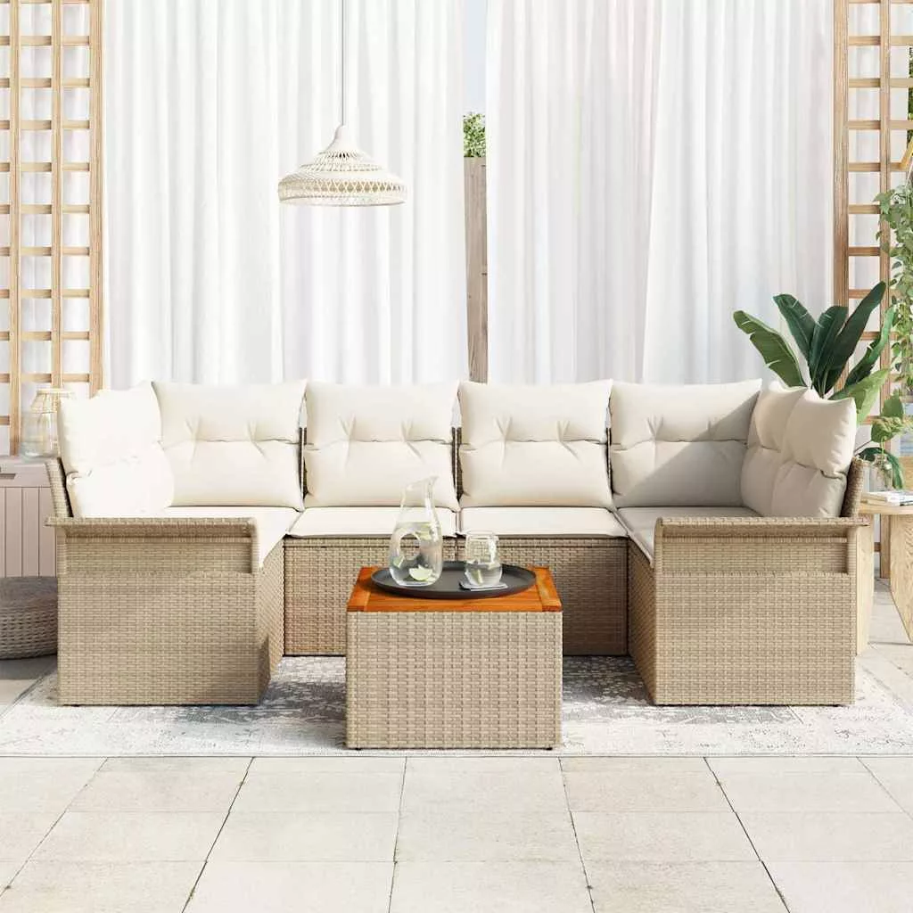 - Anyagok: Főleg polirattanból készült, így szép, szőtt megjelenést ad a kültéri dekorációnak. A tömör akácfa felületek fokozzák a tartósságot és természetes hatást kölcsönöznek. A polirattan, ami UV-álló és nedvességnek is ellenáll, megőrzi a szett esztétikáját és tartósságát.