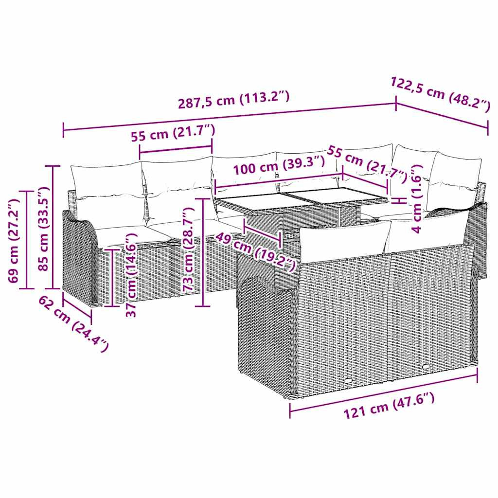 - Kényelmes lehetőségek Minden ülés időjárásálló kültéri párnákkal van ellátva, amelyek a kényelem és a tartósság tökéletes egyensúlyát mutatják. Az ülőpárnák és a háttámlák hosszú, kellemes délutánokat ígérnek, míg a levehető cipzáras borítók megkönnyítik a tisztítást, biztosítva a párnák hosszú élettartamát.