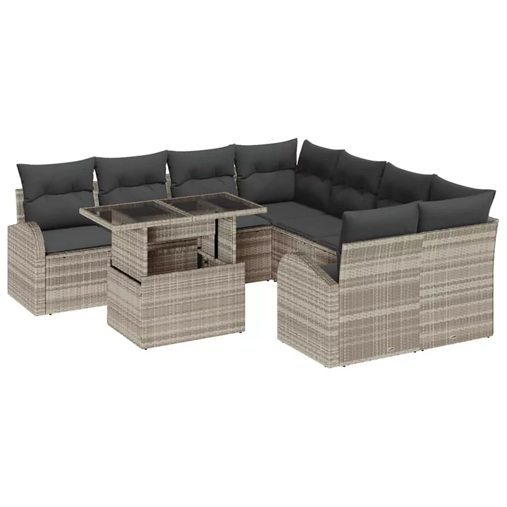 - Tartós poli rattan kivitel: Ez a kanapé szett UV-álló és tartós poli rattanból készült, amely ellenáll a fakulásnak és a romlásnak, biztosítva a hosszú élettartamot még erős napfény mellett is. Az anyag könnyű, de szilárd, így nem veszít a mobilitásából. A poli rattan szövés vonzó küllemű, így feldobja a kültéri ültetést.
