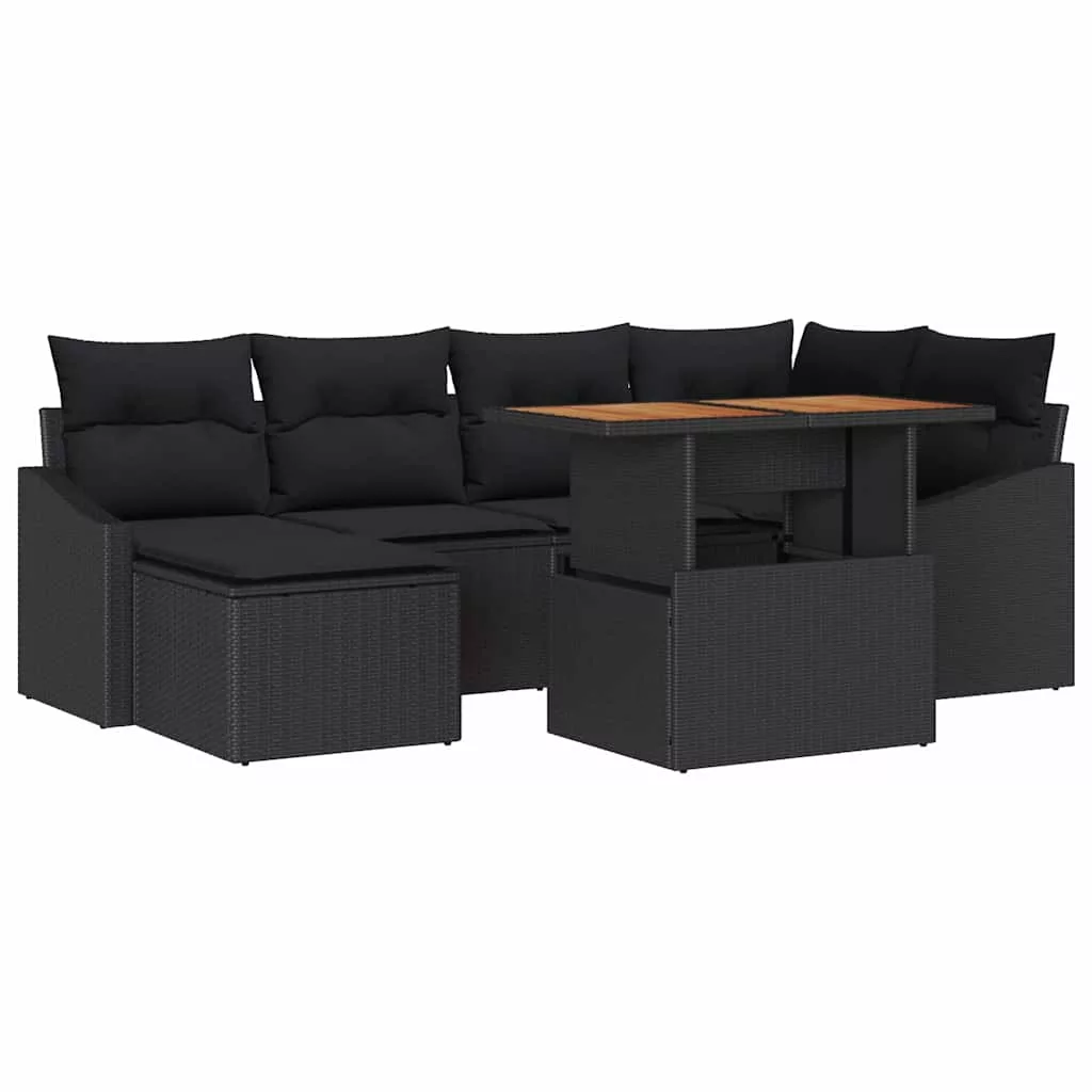 vidaXL Kerti Kanapé Szett tárolóval 7 pcs Fekete Poli rattan