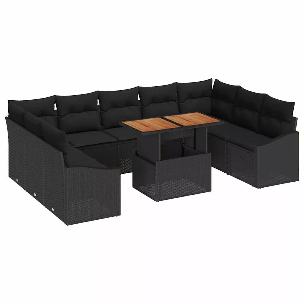 vidaXL Kerti Kanapé Szett tárolóval 10 pcs Fekete Poli rattan