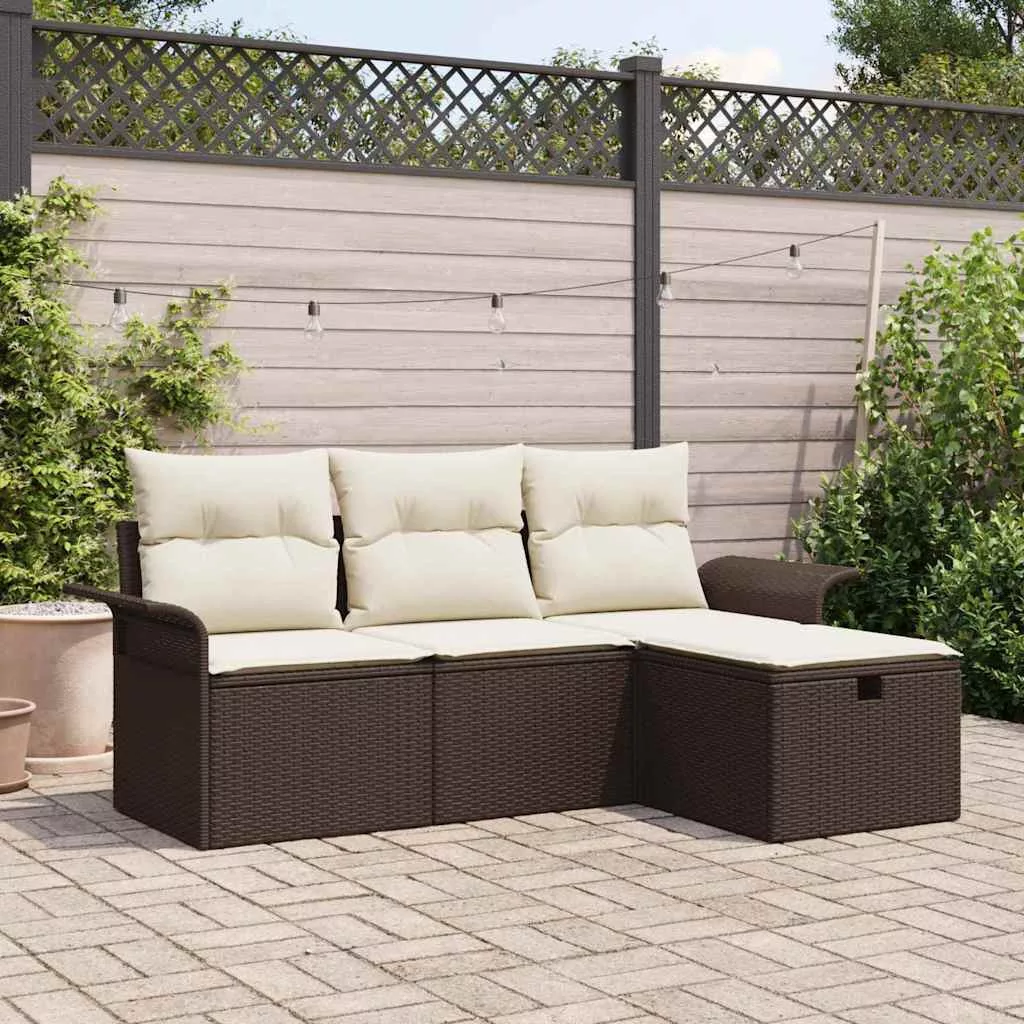 - Integrált tárolási megoldások: A padokban és az ottománokban rejtett tárolóhelyekkel ez a szett segít rendben tartani a szabadtéri dolgokat. Tartsd benne a párnákat, takarókat vagy más cuccokat, miközben a tered rendezett marad.