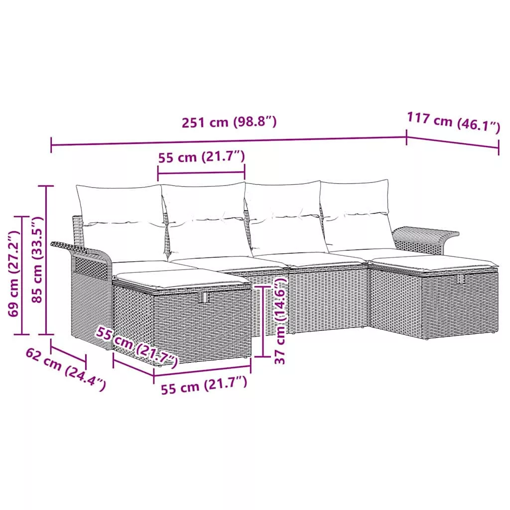 - Átfogó Készlet: Az elrendezés két középső ülésből, két karfás kanapéból, egy lábtartóból és stílusos párnákból áll, így minden ülési igényt kielégít. A méretek kényelmes helyet biztosítanak az összejövetelekhez, stílusos és kényelmes élményt nyújtva.