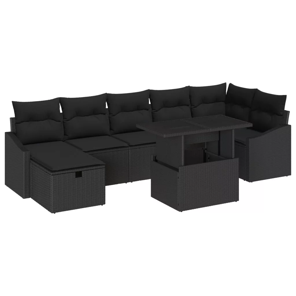 vidaXL 8 Darabos Kerti Kanapé Készlet Párnákkal Fekete Poli Rattan