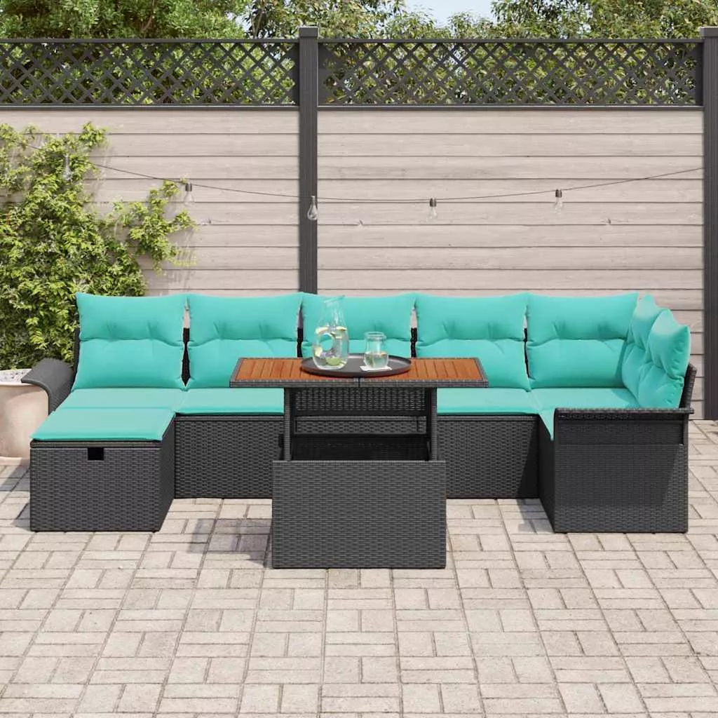 - Anyagok: A kerti kanapé szett prémium poli rattanból és akácfából készült, modern dizájnnal. A poli rattan UV-ellenálló, így hosszú ideig megőrzi a kinézetét, míg a tömör akácfa természetes eleganciát kölcsönöz.