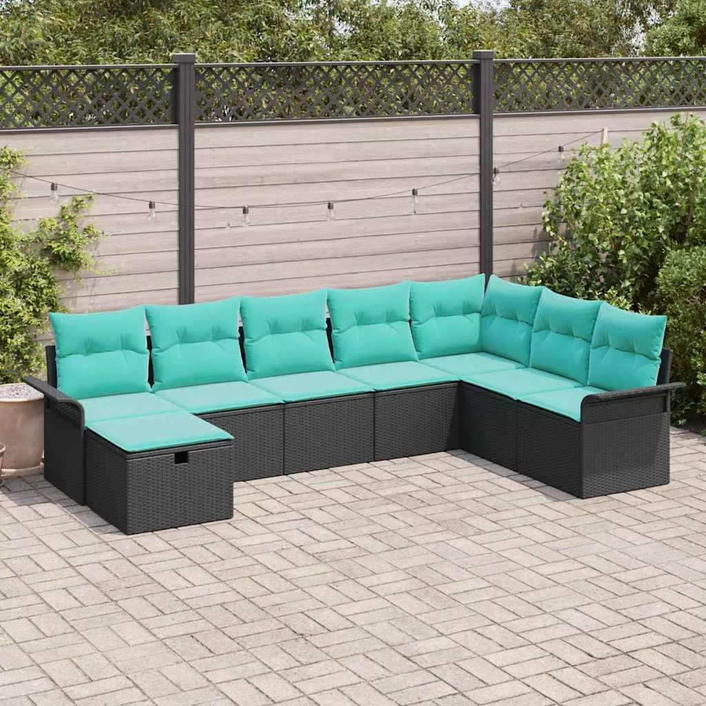 vidaXL Kerti Kanapé Szett párnával tárolóval 8 pcs Fekete Poli rattan