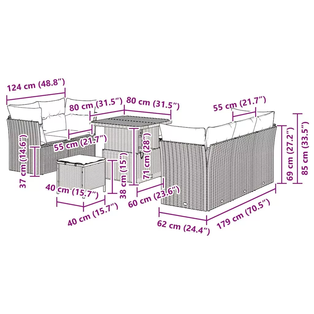 - Ajánlott felhasználások: Kültéri étkezéshez vagy pihenéshez ideális kertecskék vagy teraszok esetében, ez a szett megfelel bármely háztulajdonos igényeinek. Moduláris formatervezése lehetővé teszi az elrendezés testreszabását, legyen szó családi összejövetelről vagy nagyobb bulikról.