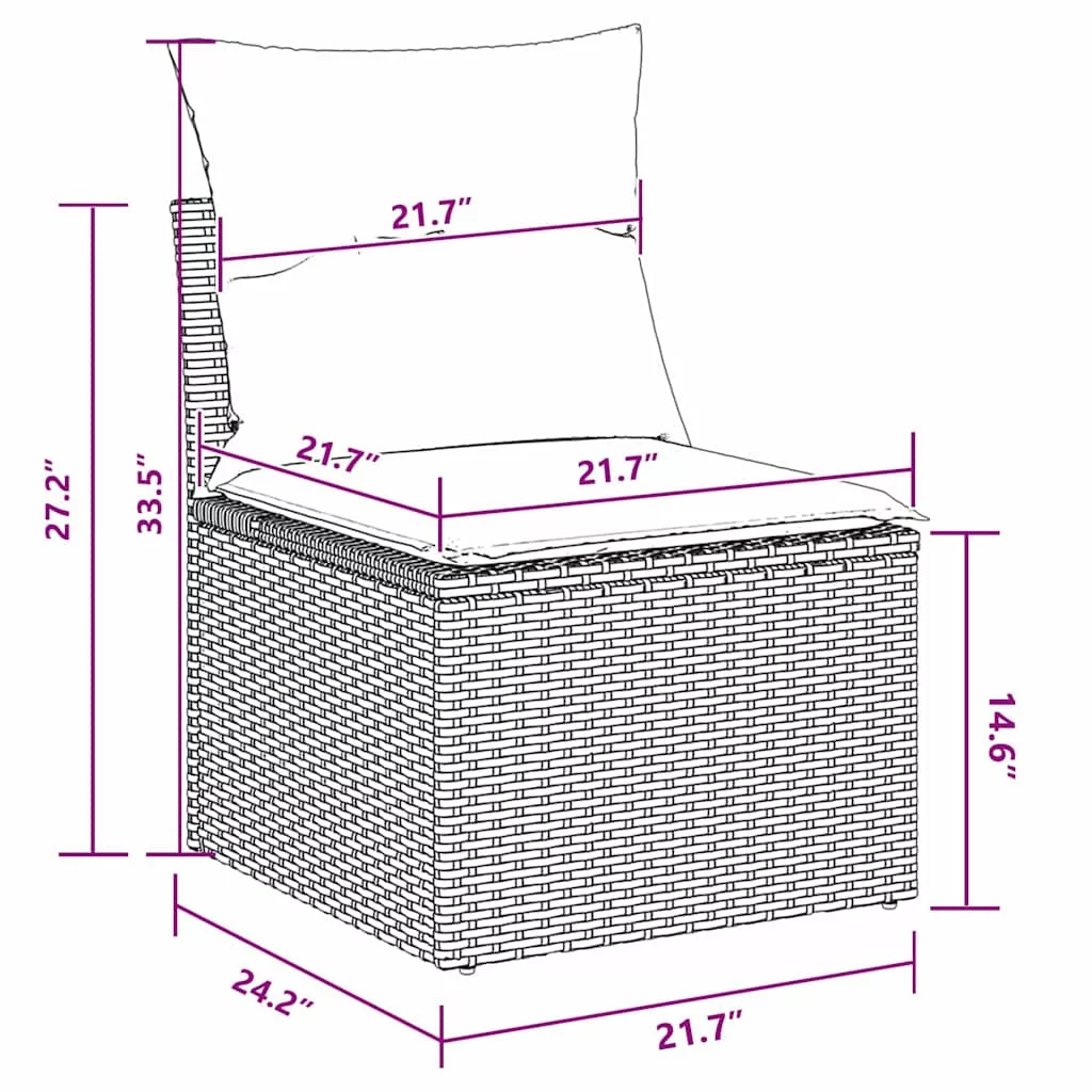 - 6 x Középső Ülés: 55 x 62 x 69 cm (H x Sz x M)