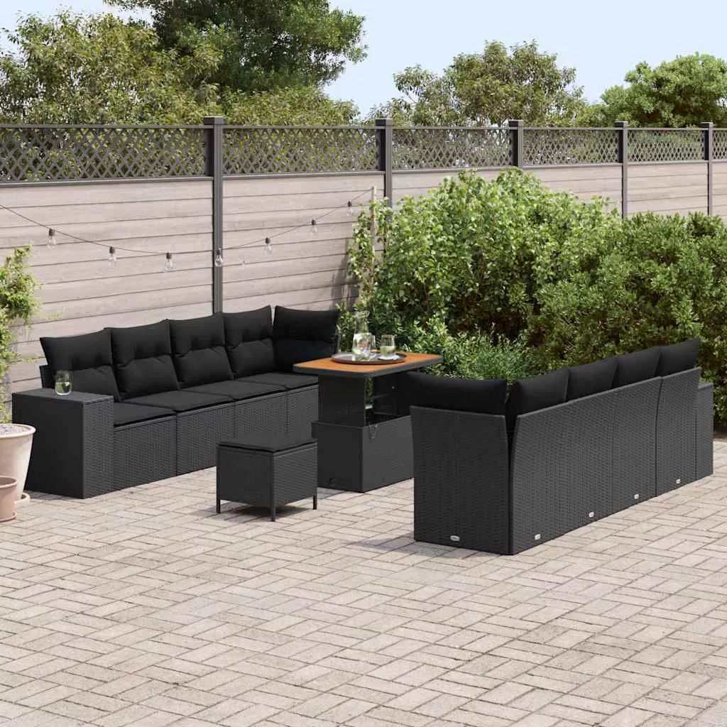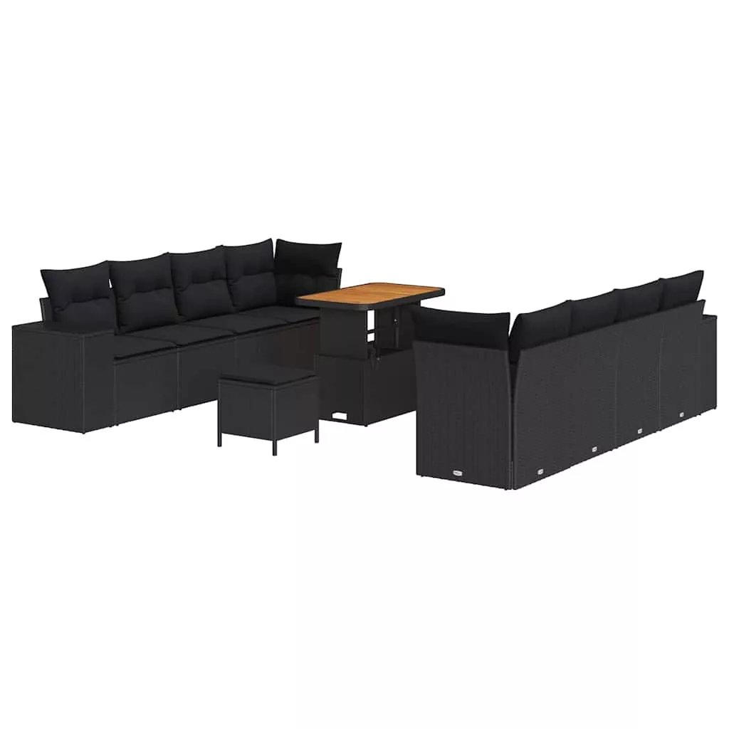 vidaXL Kerti Kanapé Szett 11 pcs Fekete polirattan
