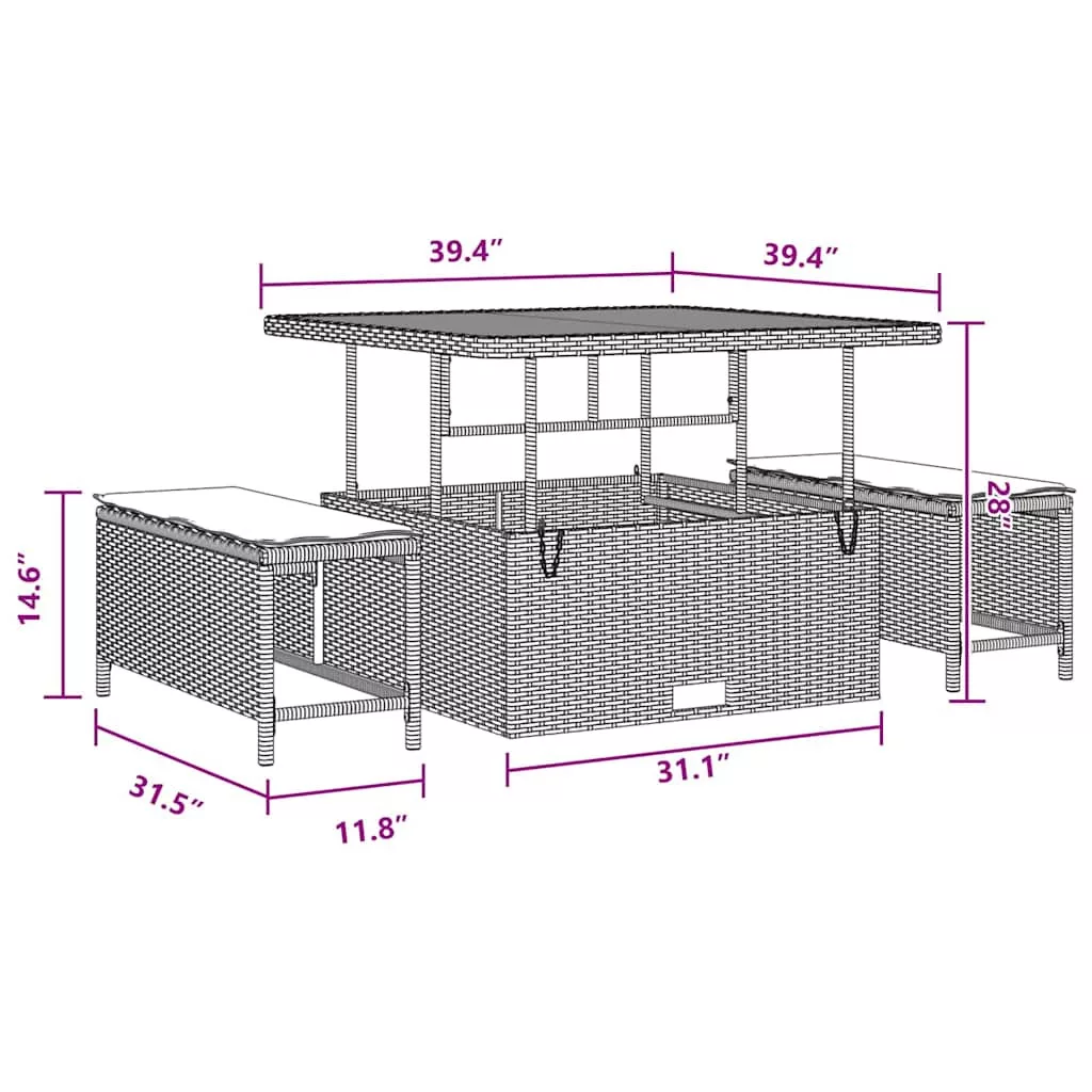 - Alacsony karbantartás: A tökéletes állapot megőrzéséhez védje a bútorokat huzatokkal, amikor nem használja őket, főleg zord időjárás esetén. A levehető ülőpárna huzatok könnyen tisztíthatók, így megkönnyítik az ápolást és megtartják a kényelmet. Ezeknek a lépéseknek a betartásával évekig fenntartja a szett szépségét és funkcionalitását.