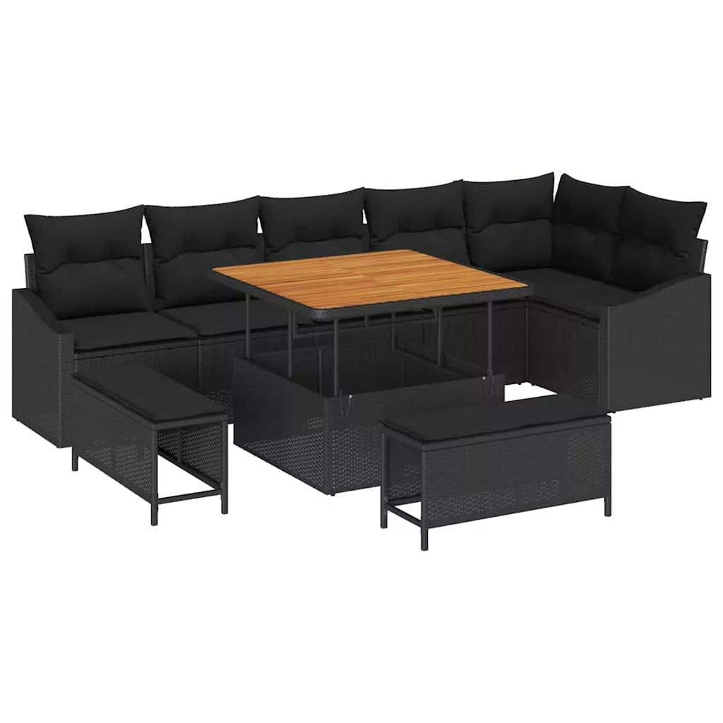 vidaXL Kerti Kanapé Szett párnával 9 pcs Fekete Poli rattan