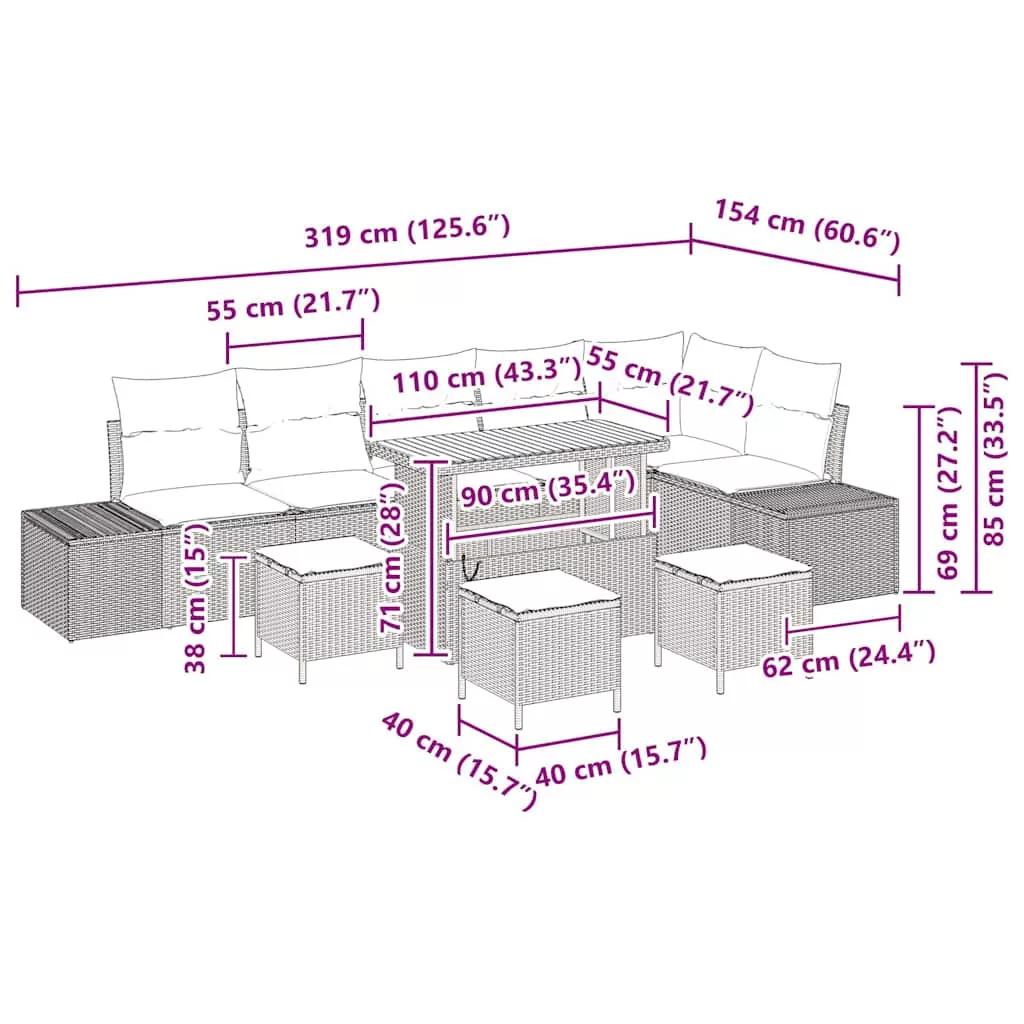 - Jellemzők / Funkció / Dizájn: Praktikusan tervezett, ez a kanapészett időjárás- és UV-álló anyagokat használ, hogy megvédje az elemek hatásaitól. Az állítható asztallap különböző igényekhez alkalmazkodik, könnyedén váltogatva a kávézó és étkezési beállítások között. Könnyű dizájn lehetővé teszi, hogy egyszerűen mozgassuk, könnyedén át tudod rendezni az alkalmaknak megfelelően.