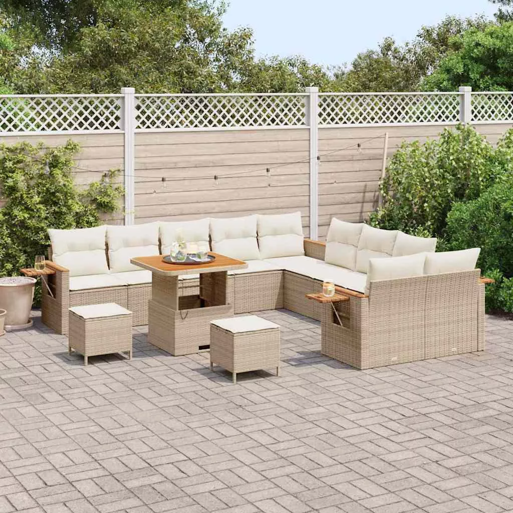 - Beépített elemek: A szett kényelmes ülést biztosít, lapos kartámmal, ami polirattanból készült, így lazán és ergonomikusan illeszkedik. Minden rész jól párnázott kültéri párnákkal van ellátva, amik könnyen levehetők mosás vagy csere céljából, így egyszerűen megőrizheti a higiéniáját. Az ülésfelület elegáns barna akácfa, stabil platformot nyújtva a italoknak vagy dekorációknak.