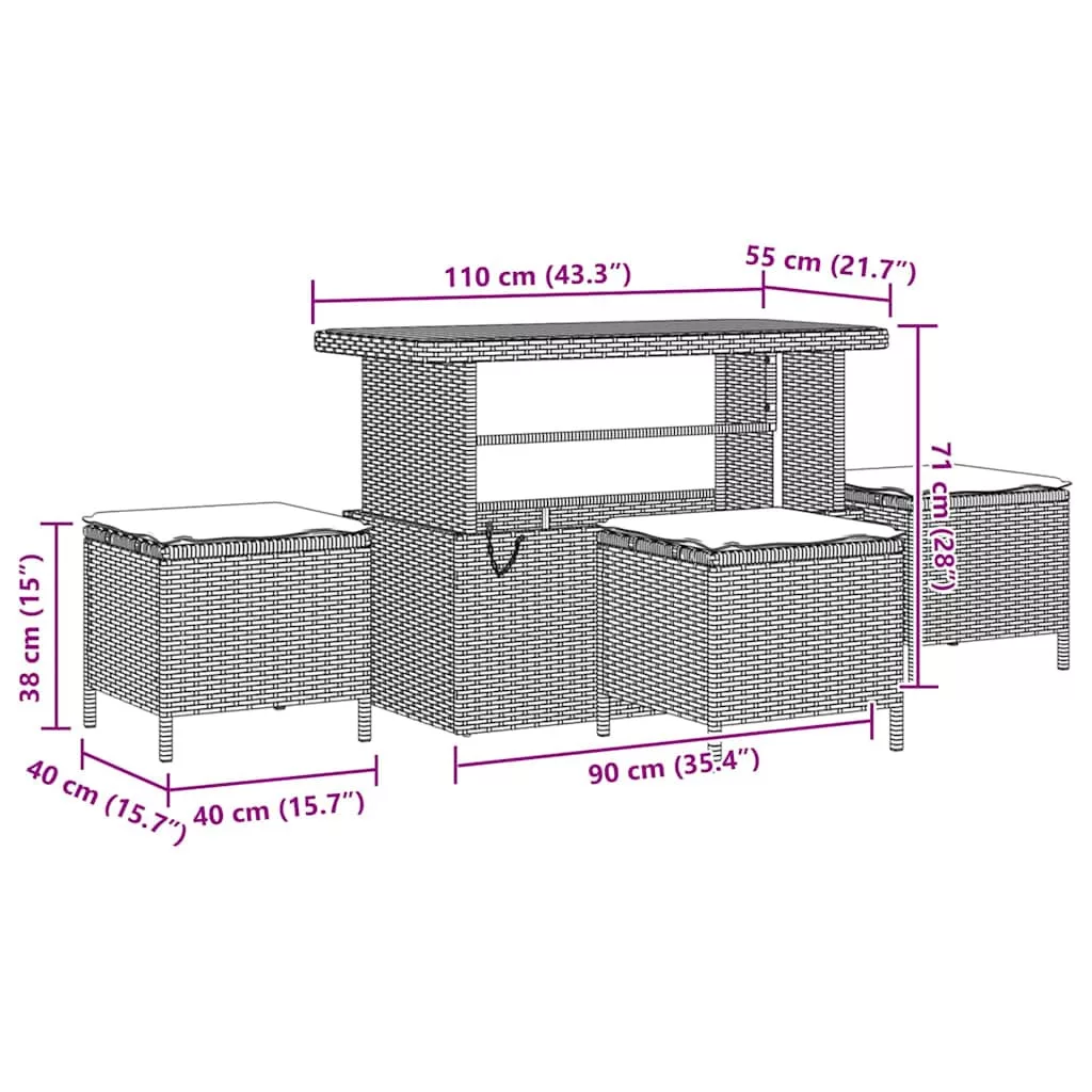 - Anyagok: Polirattan és porfestett acél váz teszi ezt a szettet robosztussá és elegánssá. Az UV-álló anyagok miatt a bútor hosszú ideig megtartja a megjelenését, és könnyen karbantartható. A masszív akácfa erősíti a struktúrát, így vintage vonzalmat és stabilitást ad a kültéri használathoz.