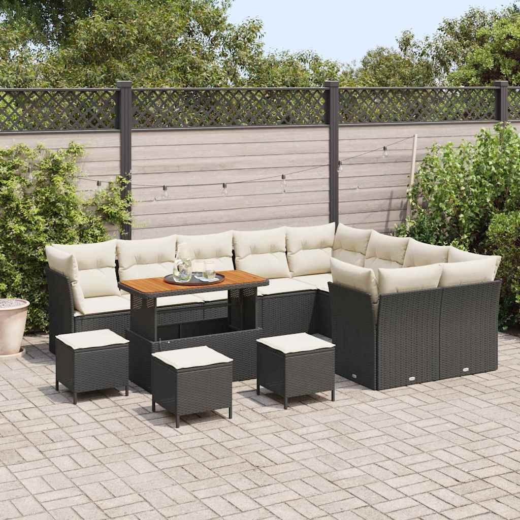 - Anyagok: A szett időjárásálló polirattanból készült, ami hosszú távú teljesítményt nyújt kültéri használatra. A szilárd akácfa felületek természetes szépséget és tartósságot adnak hozzá, miközben alacsony karbantartást igényelnek. A modern megjelenés pedig feldobja a kültéri helyeket, biztosítva a stabilitást és eleganciát.