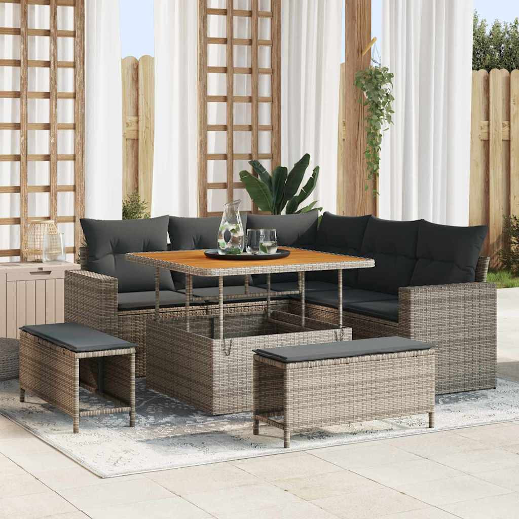 - Prémium anyagok: Ez a szett polirattanból és masszív akácfából készült. Modern megjelenése egyesíti a kortárs stílust és a tartósságot. A polirattan remek időjárásállóságot kínál, míg az akácfa természetes szépsége és ereje biztosítja a hosszú élettartamot.