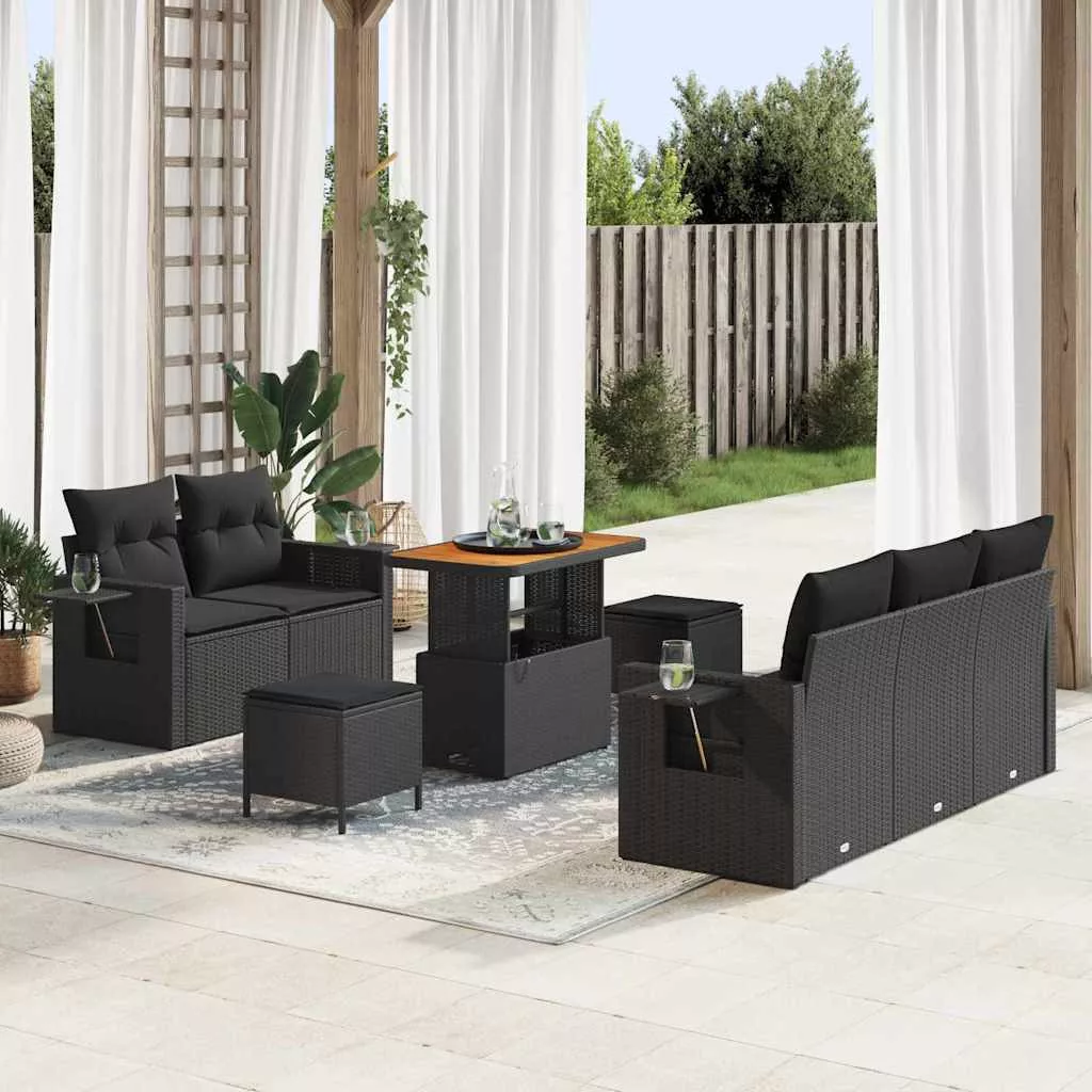 - Tömör akácfa kiegészítők: A rattan szerkezethez passzoló, meleg akácfa felületek földes varázst adnak az összképhez, ezzel ellenállva a kültéri elemek hatásainak.
