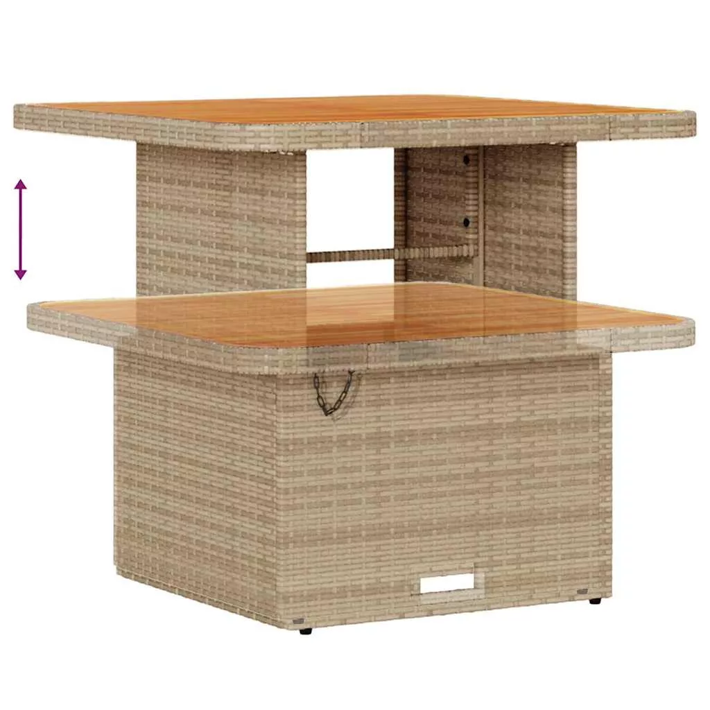 - Magas minőségű anyagok: Polirattan anyaga kortárs stílust és tartósságot nyújt, bírja az UV sugarakat és a különböző időjárást. Az akácfa természetes textúrája hozzáad a dizájnhoz, folyamatosan vonzó marad kültéren.