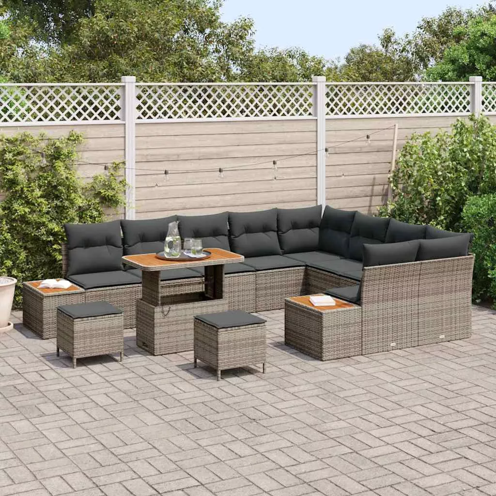 - Prémium anyagok: Ez a modern kerti kanapészett polirattanból készült, amit a tartósságáról és eleganciájáról ismernek. A tömör akácfa felület természetes érzetet ad, fokozva a tapintható és vizuális vonzerőt. Ezek az anyagok időjárás- és UV-állóak, így tökéletes választás kültéri használatra.